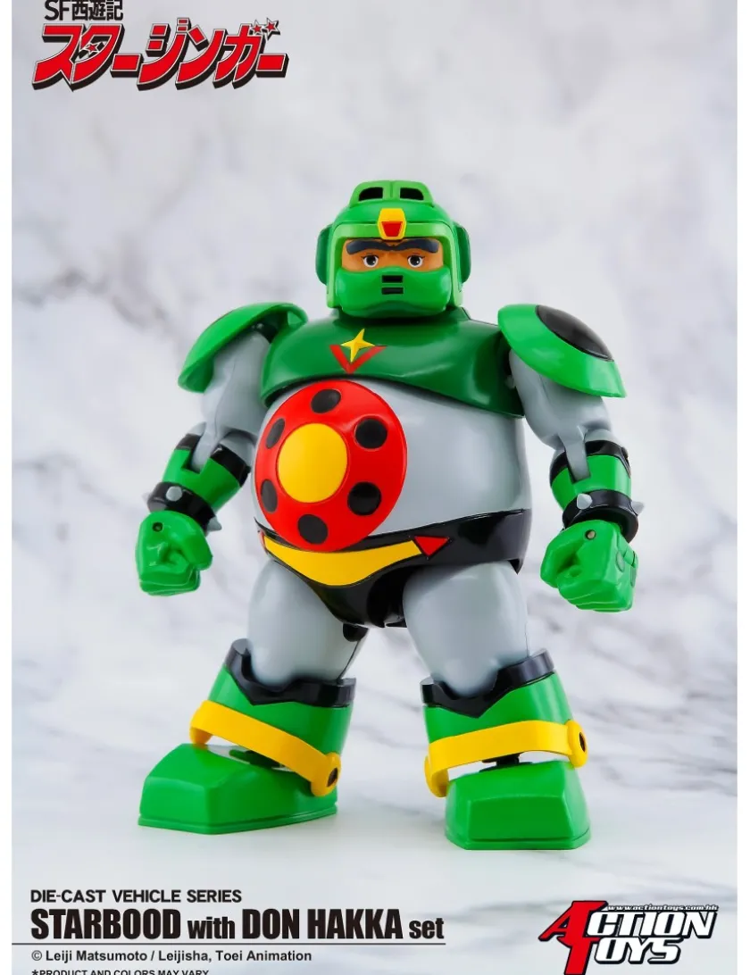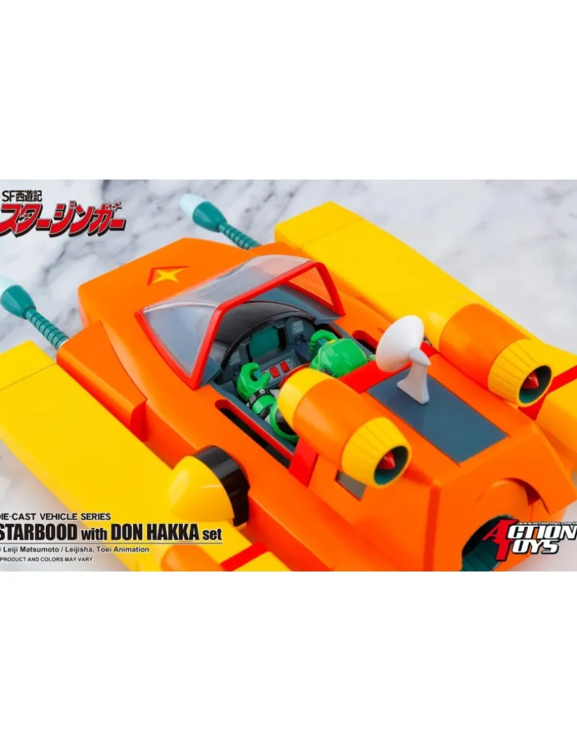Don Hakka e il suo Star Bud tratti da Starzinger entrano nella line-up Action Toys Die-Cast Vehicle Series, l’action figure di Don Hakka é alta 9.5cm mentre la Star Bud é lunga 17cm, realizzata in plastica e metallo die-cast e viene fornita con una figure in posa fissa di Don Hakka