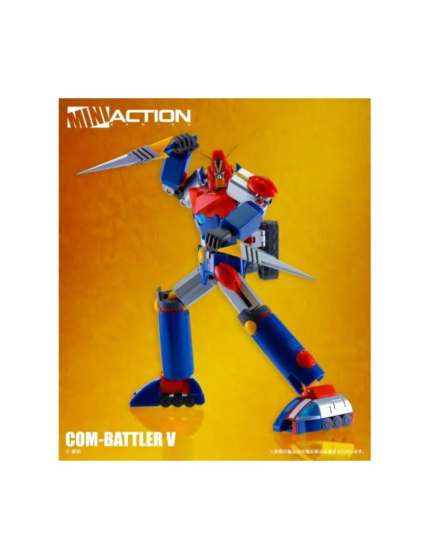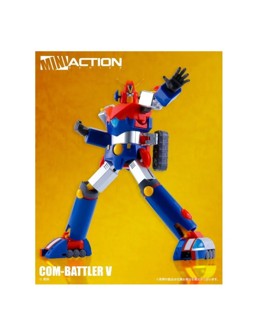 Combattler V é il primo ad entrare nella line-up Super Robot Mini Action Figure di Action Toys, azione completa, trasformabile, alto 15cm, fatto di ABS, PVC e parti die-cast viene fornito con spade.
