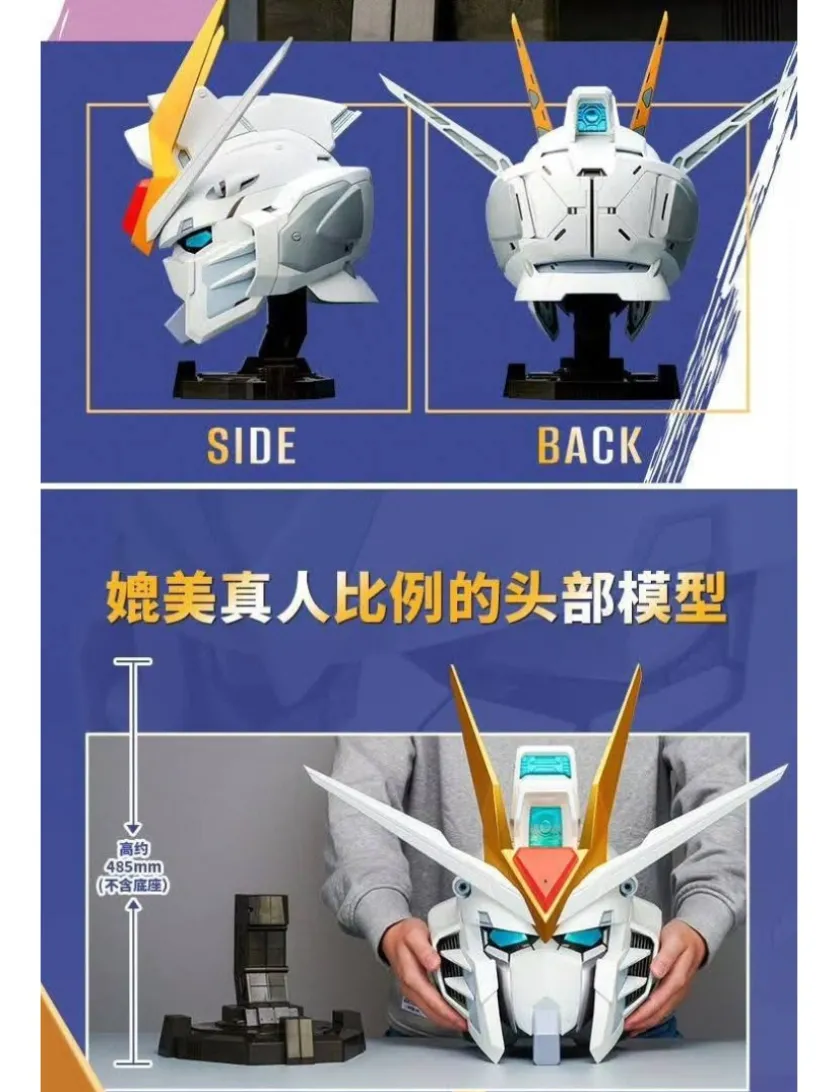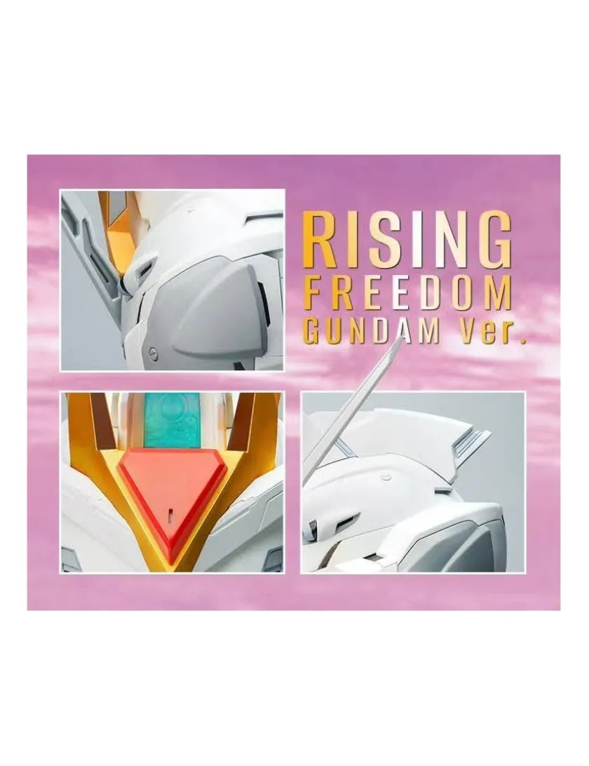La testa del STTS-909 Rising Freedom Gundam tratta da Mobile Suit Gundam entra nella line-up Bandai BN Head Collection, realizzata in plastica ed altri materiali misura 53cm x 59cm ed é dotata di un sistema di illuminazione LED per gli occhi (BATTERIE NON INCLUSE)