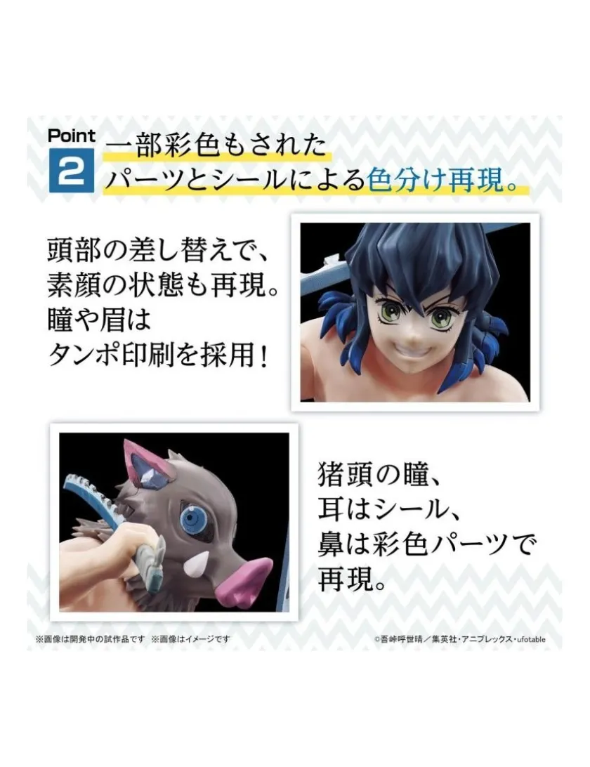 Inosuke Hashibira tratto da Demon Slayer Kimetsu No Yaiba entra nella line-up Bandai Model Kit. Kit a scatto, stampato a colori che non necessita di vernice o colla per completarlo e alto 14cm una volta assemblato.