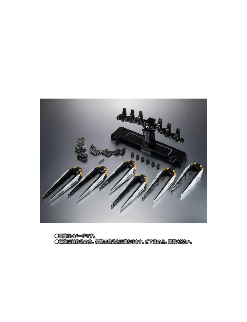 Il Set comprende 6 differenti Fin Funnels, ognuno dei quali lungo 38cm (il Gundam sarà alto 55cm con il Set montato su di esso)