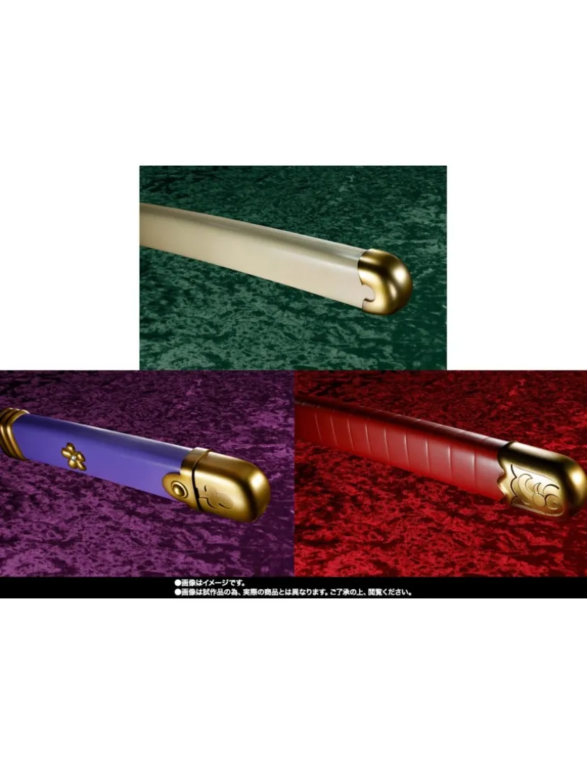 Le 3 katana di Roronoa Zoro tratte da One Piece entra nella line-up Bandai Proplica. Il set include base espositiva per le 3 katana, Wado Ichimonji, fodero per la Wado Ichimonji, parti intercambiabili Wado Ichimonji, Sandai Kitetsu, fodero per la Sandai Kitetsu, Enma, foder per Enma, parti intercambiabili per Enma e Safety sheet. Ogni katana é realizzata in ABS e PVC e sono lunghe 95cm.