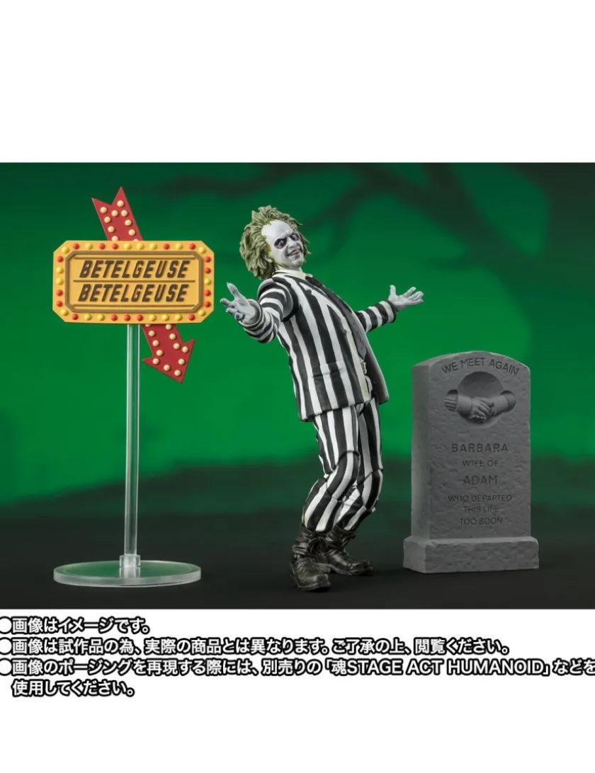 La Bandai S.H. Figuarts deve aver chiamato il suo nome 3 volte perché BEETLEJUICE è tornato dagli anni ’80 come action figure…! Come il vero “Bio-Esorcista”, le parti delle espressioni facciali sono create tramite stampa digitale, rendendolo ancora più meravigliosamente orribile. Beetlejuice è dotato anche di parti extra; una piccola parte della testa quando si trasforma, così come la sua lapide e altro ancora, così puoi ricreare molte scene iconiche del film.