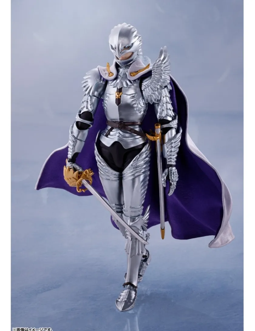 Griffith il Falco di Luce tratto da Berserk entra nella line-up Bandai S.H. Figuarts, azione completa alto 15.5cm. Viene fornito con 5 mani intercambiabili, volto intercambiabile, spada, elmo, mantello e cavallo