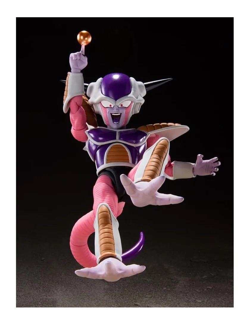 Frieza e il suo Hover Pod tratti da Dragon Ball Z entrano nella line-up Bandai S.H. Figuarts, azione completa. Frieza é alto 11cm mentre l’Hover Pod é alto 10cm. Viene fornito con 4 mani intercambiabili, 5 volti intercambiabili, 1 testa alternativa, Scouter, Sfera del Drago a 5 STelle di Namek, parti d’effetto Super Nova.