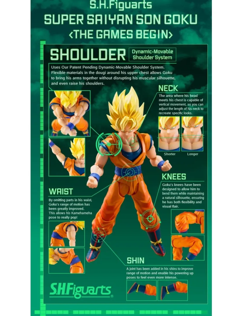 Son Goku Super Saiyan “The Beginning of the Decisive Battle” tratto da Dragon Ball Z entra nella line-up Bandai S.H. Figuarts, azione completa alto 14.5cm. Viene fornito con 8 mani intercambiabili, 3 volti intercambiabili e parti della testa intercambiabili.