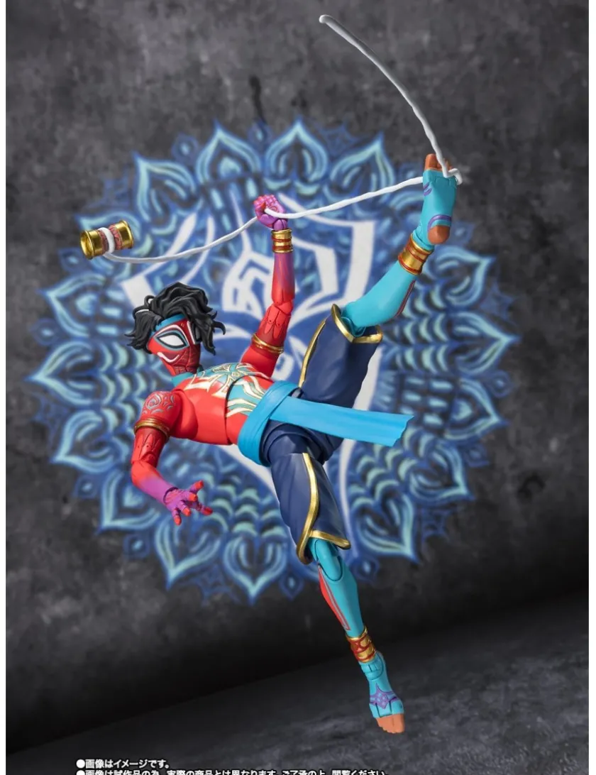 Spider-Man India tratto da Spider-Man: Across the Spider-Verse entra nella line-up Bandai S.H. Figuarts, azione completa alto 15.5cm. Viene fornito con mani intercambiabili, testa intercambiabile, braccio destro intercambiabile, yo-yo, parti del collo intercambiabili, parti degli occhi intercambiabili e 5 parti di effetto ragnatela