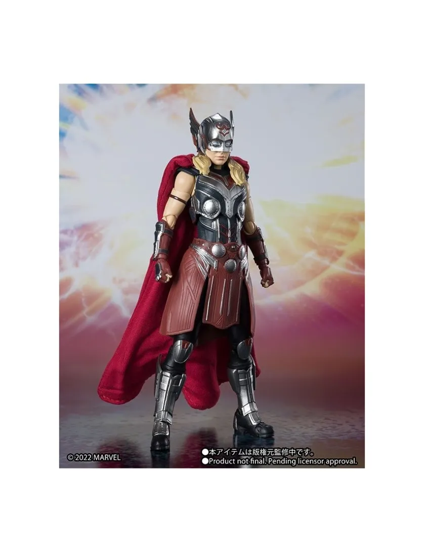 Mighty Thor tratta da Thor: Love and Thunder entra nella line-up Bandai S.H. Figuarts, azione completa, alta 14.5cm. Viene fornita con 4 mani intercambiabili, 1 testa intercambiabile, Mjolnir e parti d’effetto.