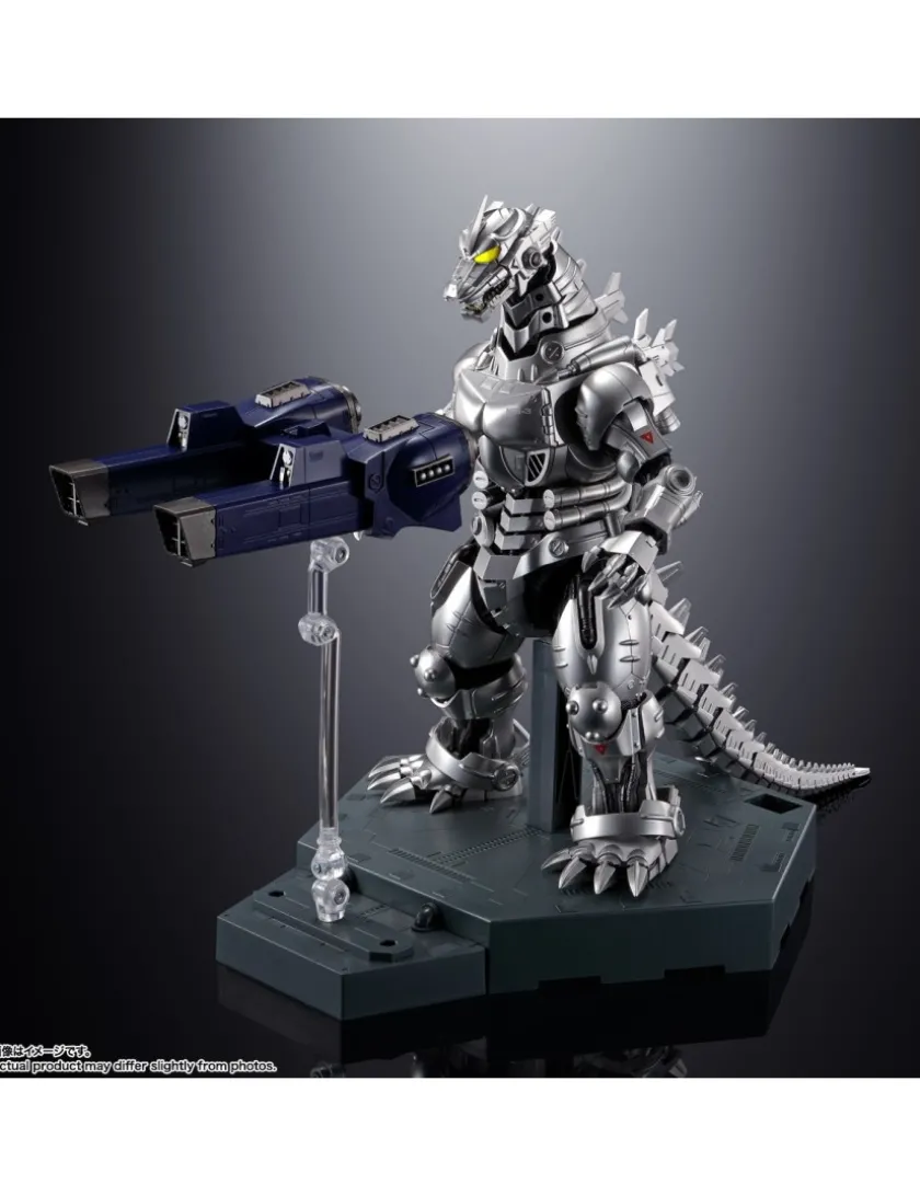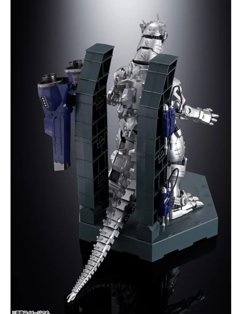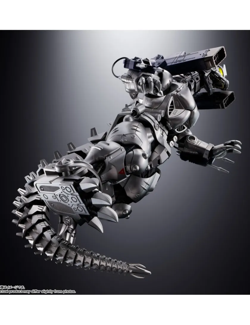 MFS-3 Type 3 Machine Dragon (MechaGodzilla) entra nella line-up Bandai Soul Chogokin, azione completa, realizzato in ABS, PVC e metallo die-cast é alto 23cm. Viene fornito con base espositiva, occhi intercambiabili, Back Unit, Type 0 railgun destra e sinistra, 2 Master Blade, placca pettorale e braccio destro danneggiati, minifigure di Akane Ieshiro e accessori