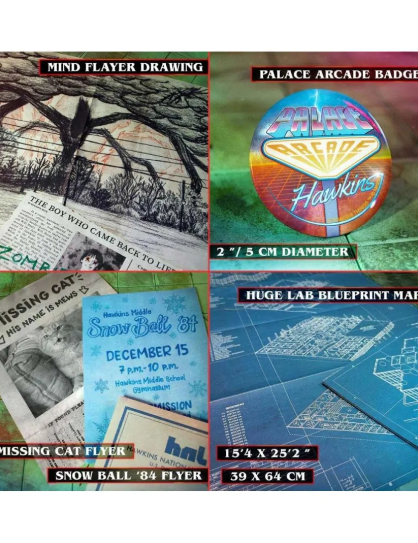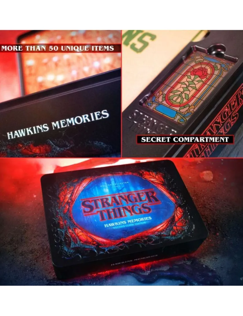 Questo magnifico box in metallo contiene oltre 50 differenti ed uniche repliche/memorabilia raccolte dagli eroi di Hawkins tra il 1983 ed il 1986, ricordandoci quante “cose strane” sono accadute da quelle parti…