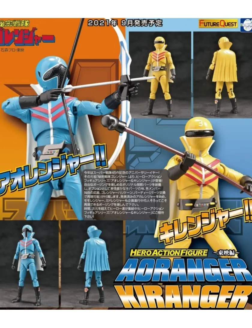 Aoranger e Kiranger tratti da Himitsu Sentai Goranger entrano nella line-up Evolution Toy Hero Action Figure, azione completa, alti 17cm.