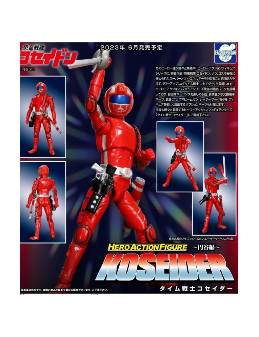 Time Warrior Koseider tratto da Dinosaur War Koseidon entra nella line-up Evolution Toy HAF (Hero Action Figure), azione completa alto 17cm. Viene fornito con 8 mani intercambiabili, Laser Saber e Plasma Beam Gun
