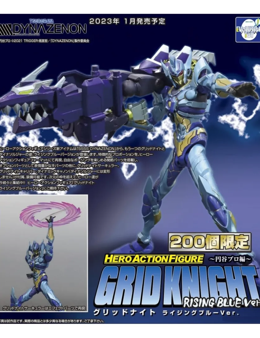 Evolution Toy Hero Action Figure SSSS.Dynazenon Gridknight Rising Blue Version, azione completa alto 17.5cm. Viene fornito con base espositiva, 4 mani intercambiabili, Gridknight Calibur, Dynamic Cannon e parti di effetto Gridknight circular