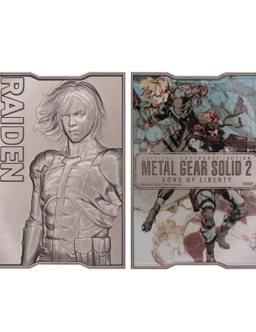 L’eroe di Metal Gear Solid 2, Raiden, viene coinvolto in un’operazione di salvataggio quando il gruppo terroristico Sons of Liberty attacca e rapisce il Presidente degli Stati Uniti. Questo lingotto di metallo stampato su due lati celebra le sue azioni ed รจ limitato a 5.000 esemplari in tutto il Mondo. ร numerato singolarmente e viene fornito con un supporto da esposizione nella sua scatola di presentazione.