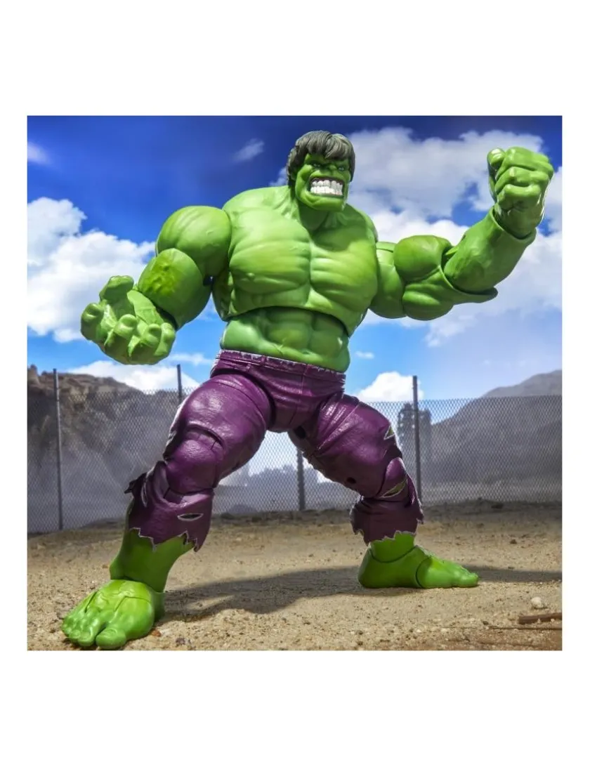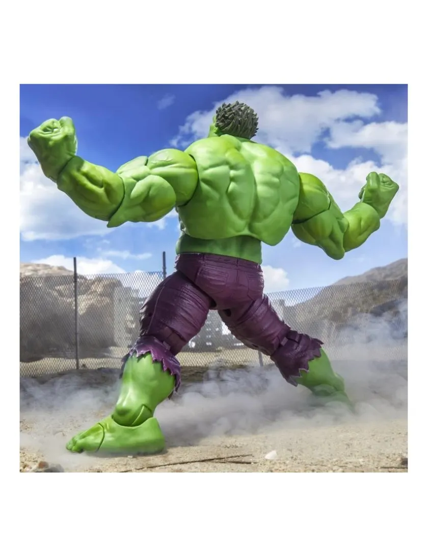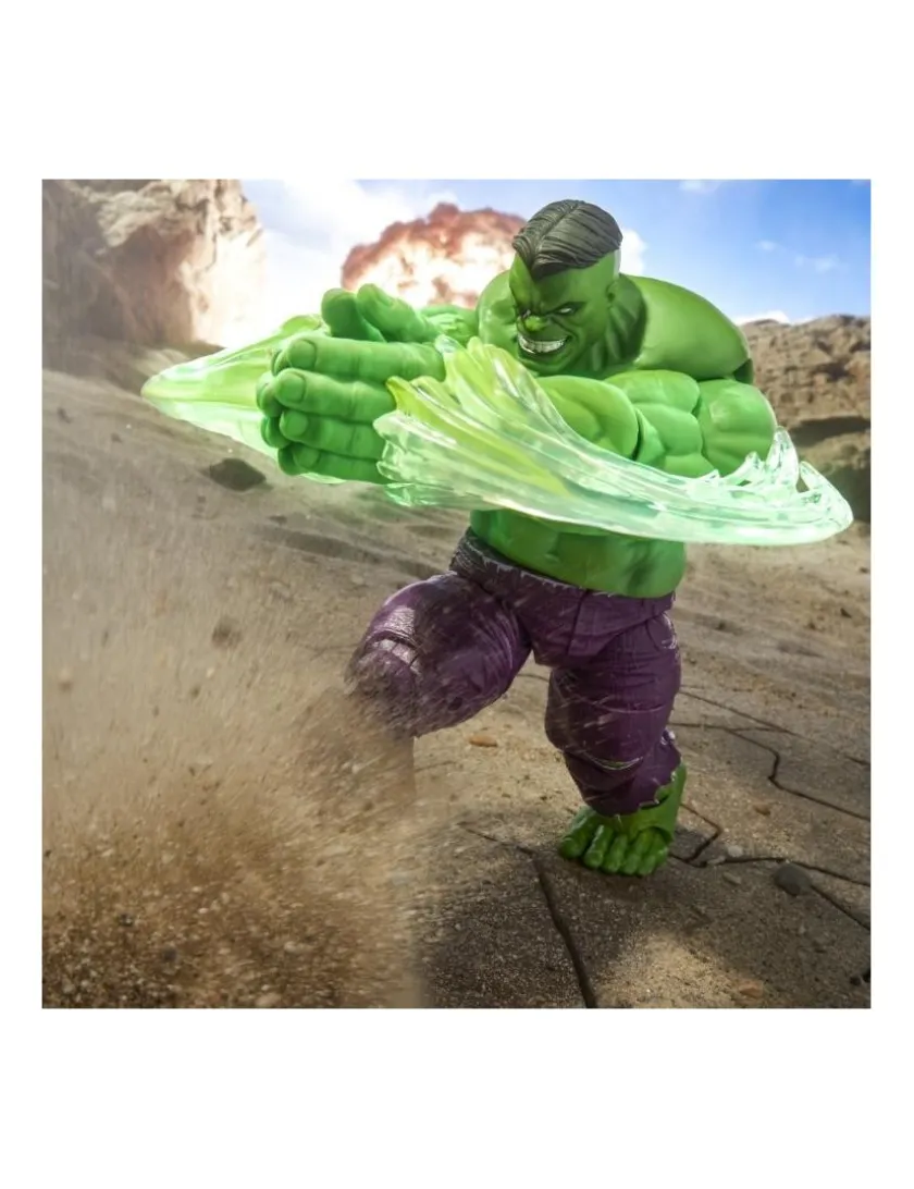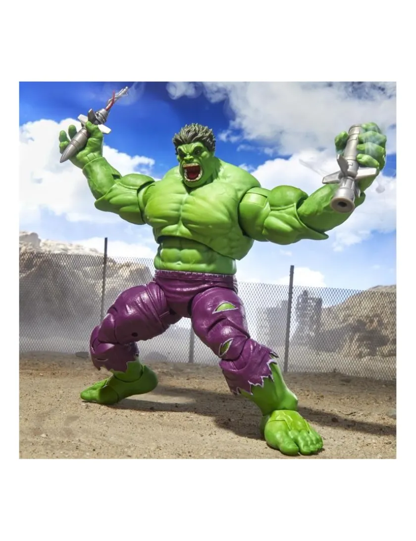 Questa action figure deluxe con licenza ufficiale Hasbro Marvel Legends รจ ricca di 11 accessori, tra cui 2 teste alternative, 4 mani alternative, 3 effetti tuono e un missile per mettere in posa Hulk mentre afferra e fa a pezzi.