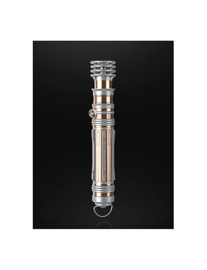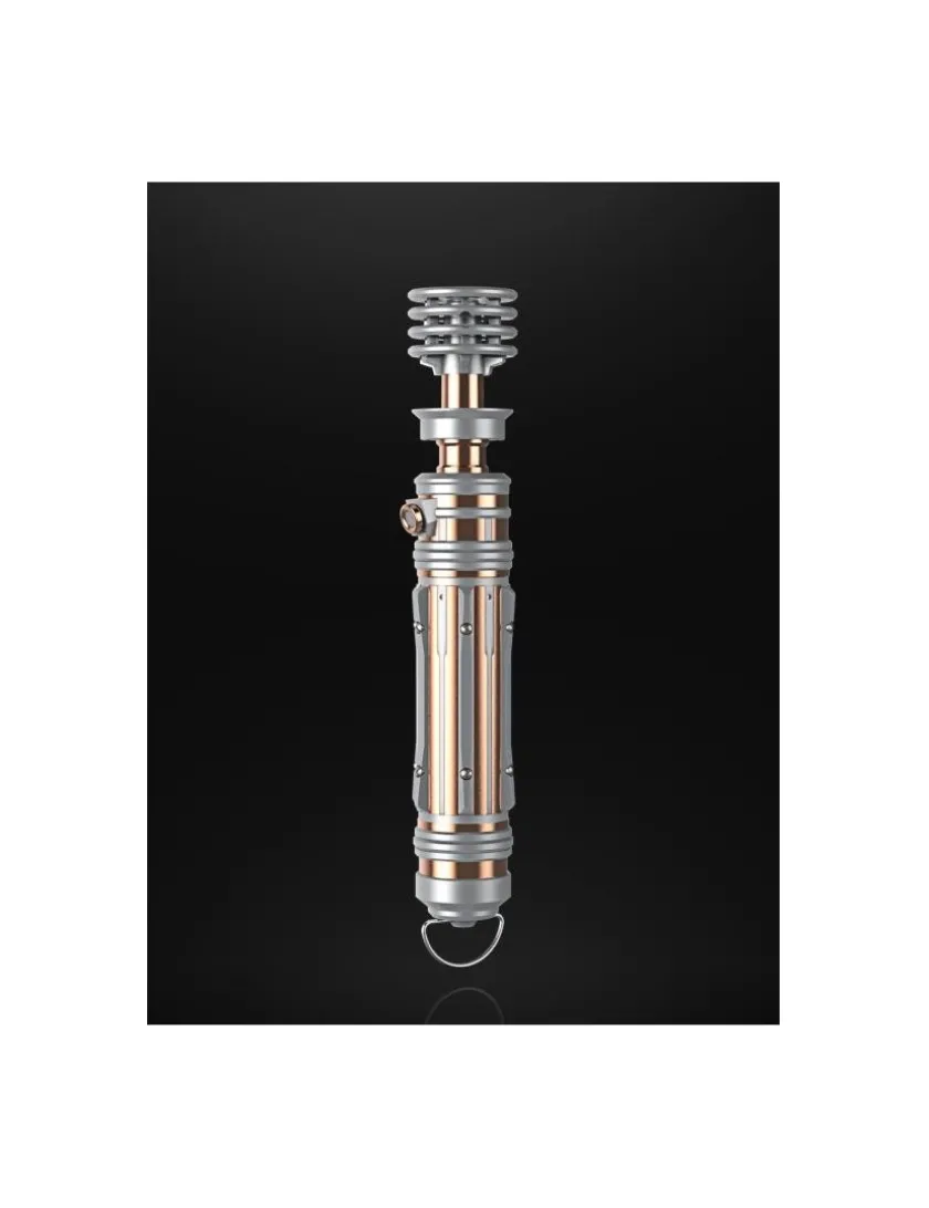 DETTAGLI PREMIUM PER L’AUTENTICITÀ: l’elsa in vero metallo presenta un design e un decoro basati sulla spada laser di Leia Organa presente nel film Star Wars: L’Ascesa di Skywalker