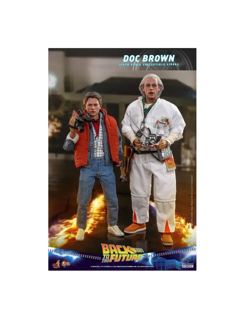 Doc Brown tratto da Ritorno al Futuro entra nella line-up Hot Toys Masterpiece, azione completa alto 30cm. Viene fornito con base espositiva, 4 mani intercambiabili,controllo remoto, cintura degli attrezzi, appunti, cronometro, cronometro per Einstein, grafico climatico, bloc notes, confezione di penne, stampante portatile e righello.