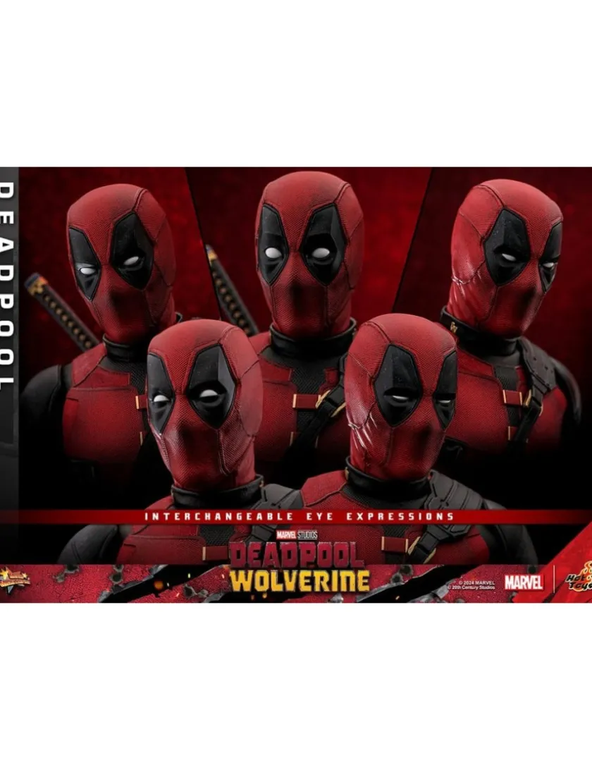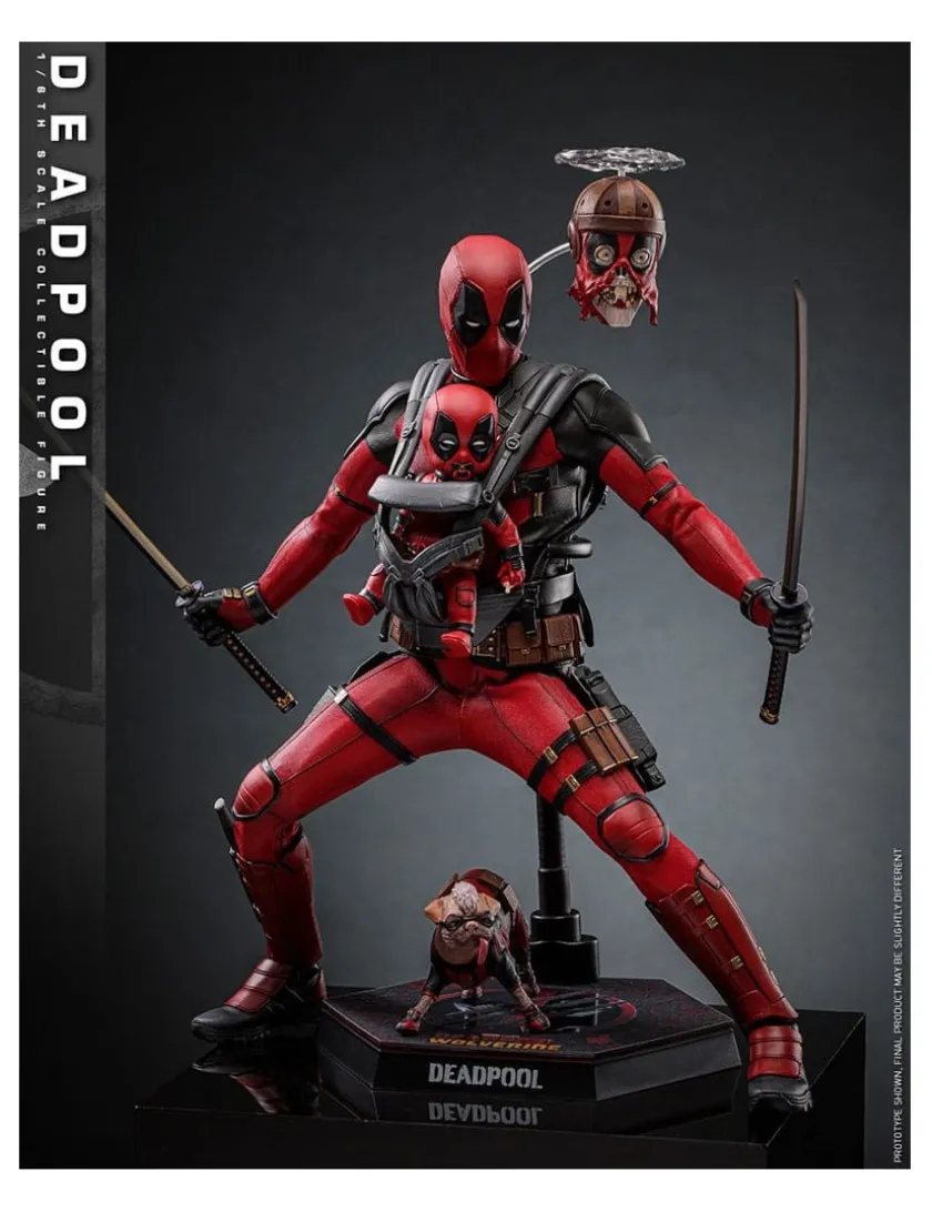 Deadpool tratto da Deadpool & Wolverine entra nella line-up Hot Toys Movie Masterpiece, azione completa con 30 punti di articolazione e alto 31cm. Viene fornito con base espositiva, 12 mani intercambiabili, 10 occhi intercambiabili, 2 katana, pugnale, 2 pistole, figure di Dogpool, Headpool, Babypool con occhi intercambiabili e imbracatura