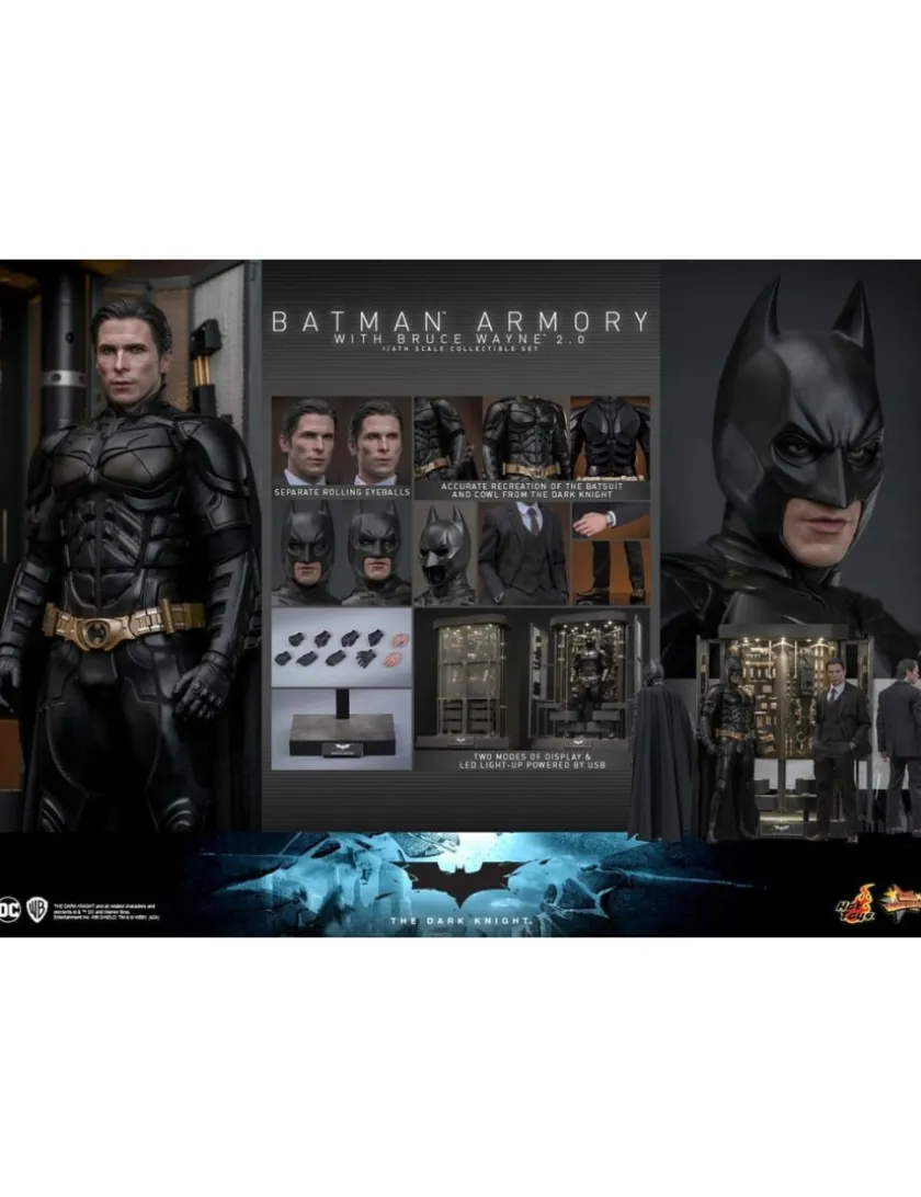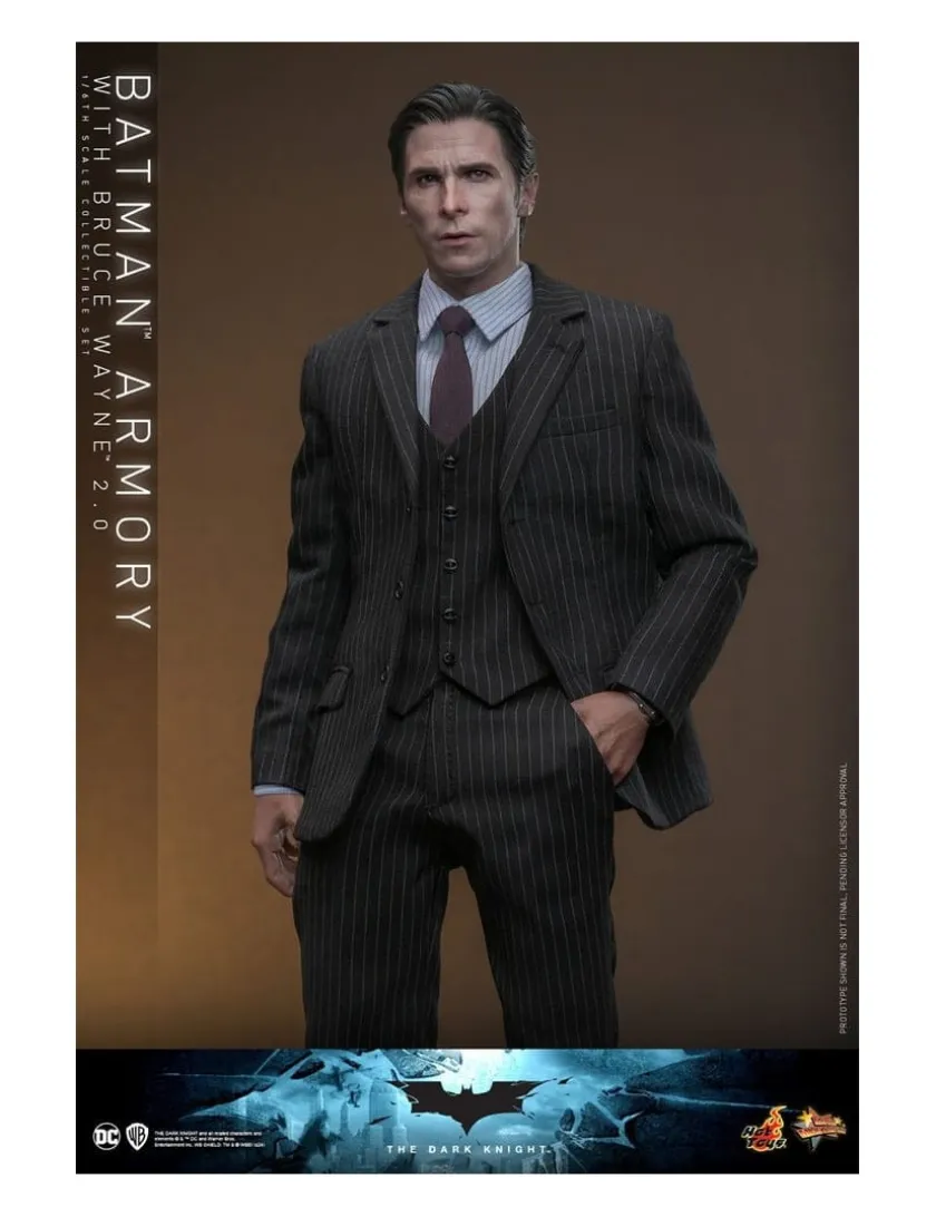 Hot Toys Movie Masterpiece The Dark Knight Batman Armory with Bruce Wayne 2.0 Version 1/6 Scale Collectible Figure Set