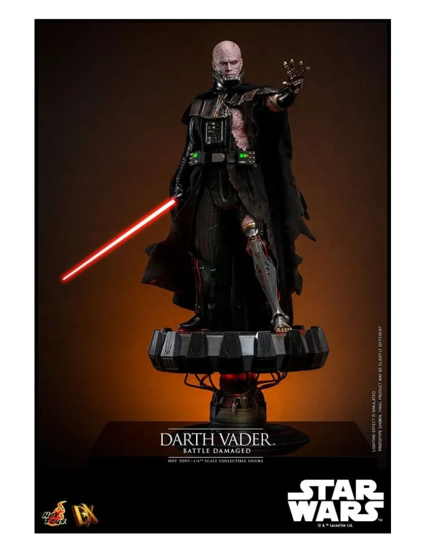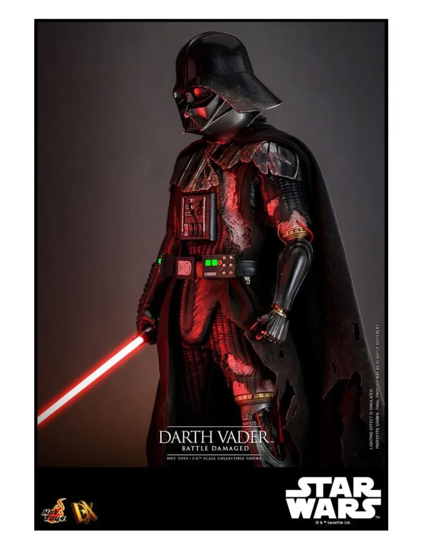 Darth Vader (Battle Damaged) tratto da Star Wars entra nella line-up Hot Toys, azione completa con 30 punti di articolazione e alto 35cm. Viene fornito con base espositiva, 2 teste intercambiabili (una con casco e una senza casco), 6 mani intercambiabili, mano destra alternativa, lightsaber, LED lightsaber e 2 lame lightsaber intercambiabili