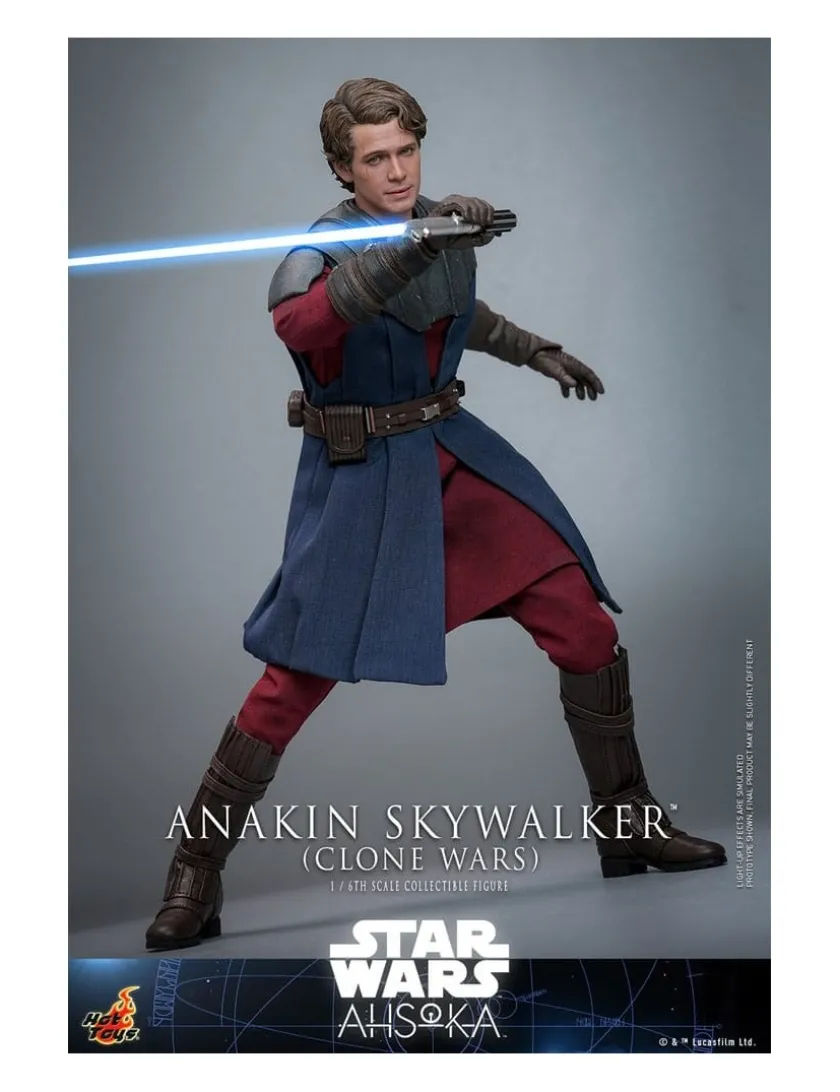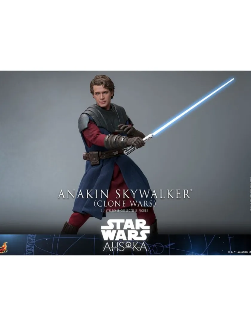 Anakin Skywalker (Clone Wars) tratto da Star Wars Ahsoka entra nella line-up Hot Toys Television Masterpiece, azione completa alto 30cm. Viene fornito con base espositiva, 2 volti intercambiabili, 7 mani intercambiabili, LED lightsaber, 2 lame per la lightsaber, 2 parti di effetto deviazione blaster, holoproiettore, ologramma di Obi-Wan, ologramma del Capitano Rex e ologramma di Ahsoka Tano.