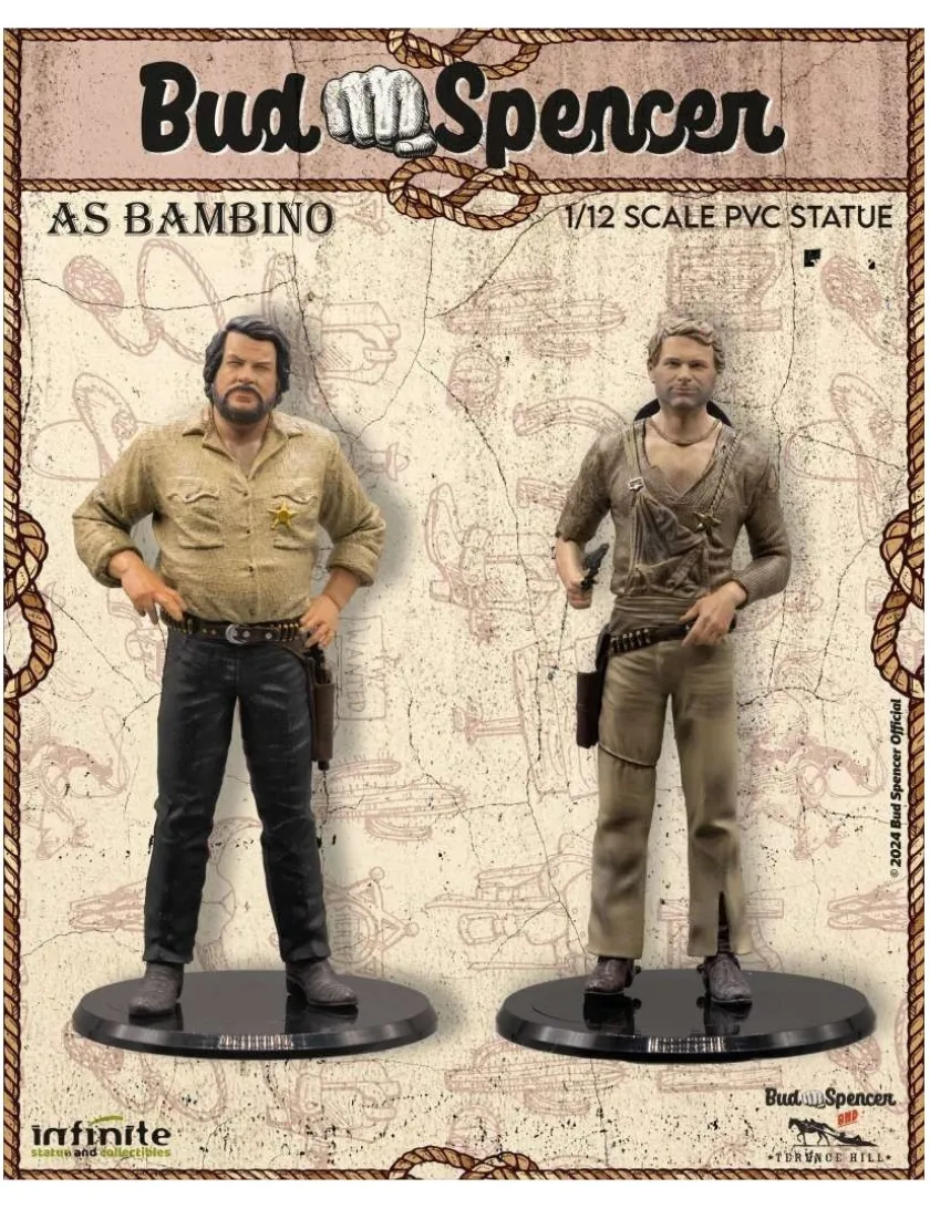 Dopo il grande successo delle statue in resina in scala 1/6, Infinite Statue & Collectibles รจ entusiasta di presentarvi la nuova collezione di mini statue in PVC in scala 1/12, dedicate ai leggendari Bud Spencer e Terence Hill! Rappresentati nei loro famosi ruoli di Bambino, Banana Joe, Bulldozer e Trinitร , questi personaggi affascinano e divertono in una versione ancora piรน compatta. Ogni miniatura, ricca di dettagli e carattere, รจ perfetta per i collezionisti e gli amanti del cinema. Non perdere lโoccasione di portare a casa un pezzo della storica amicizia che ha fatto ridere generazioni intere!