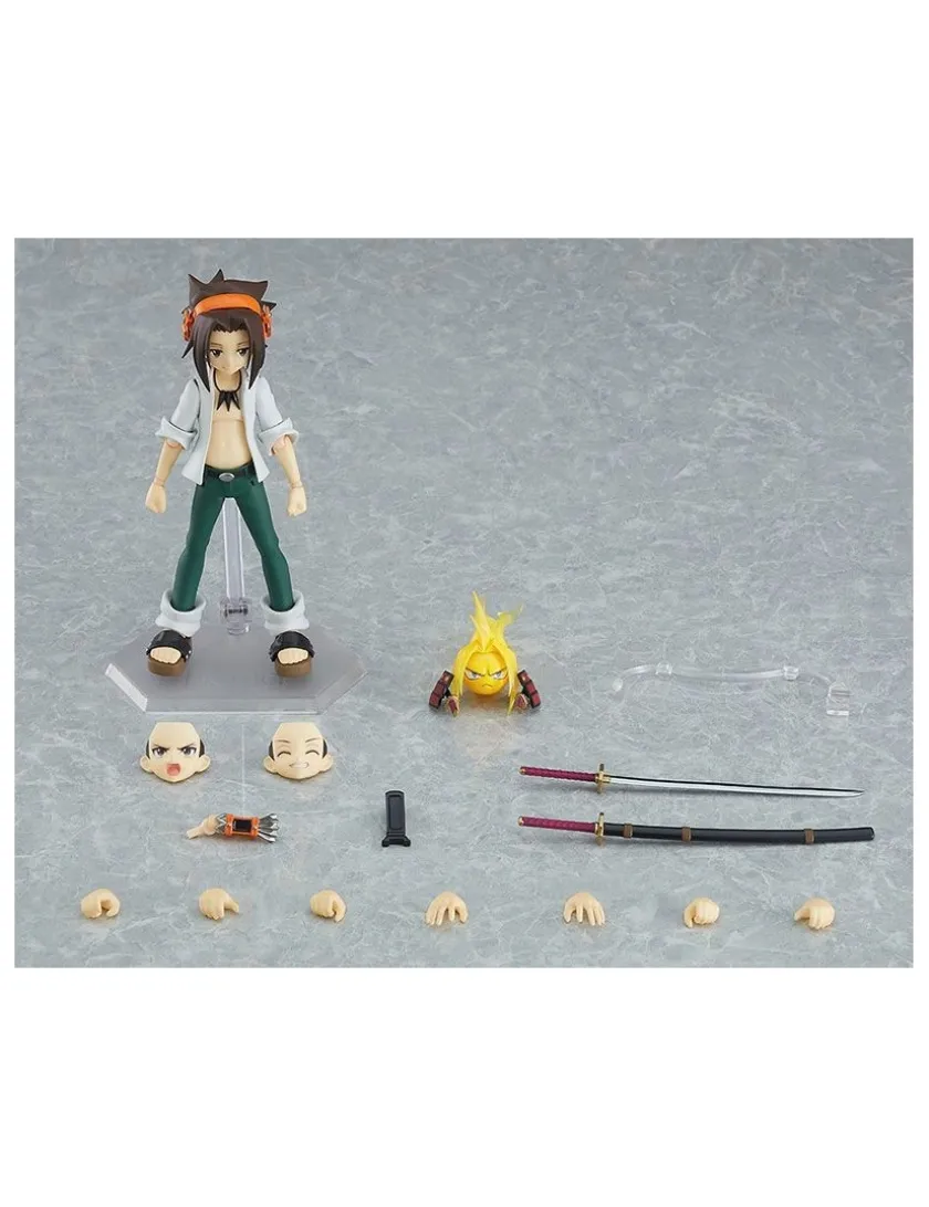 Yoh Asakura tratto da Shaman King entra nella line-up Max Factory Figma, azione completa, alto 14cm. Viene fornito con stand Figma, 3 volti intercambiabili, 7 mani intercambiabili, Harusame, Harusame infoderata, tavoletta mortuaria, avambraccio con Oracle Bell, miniatura di Amidamaru forma spirito con supporto per esporlo.