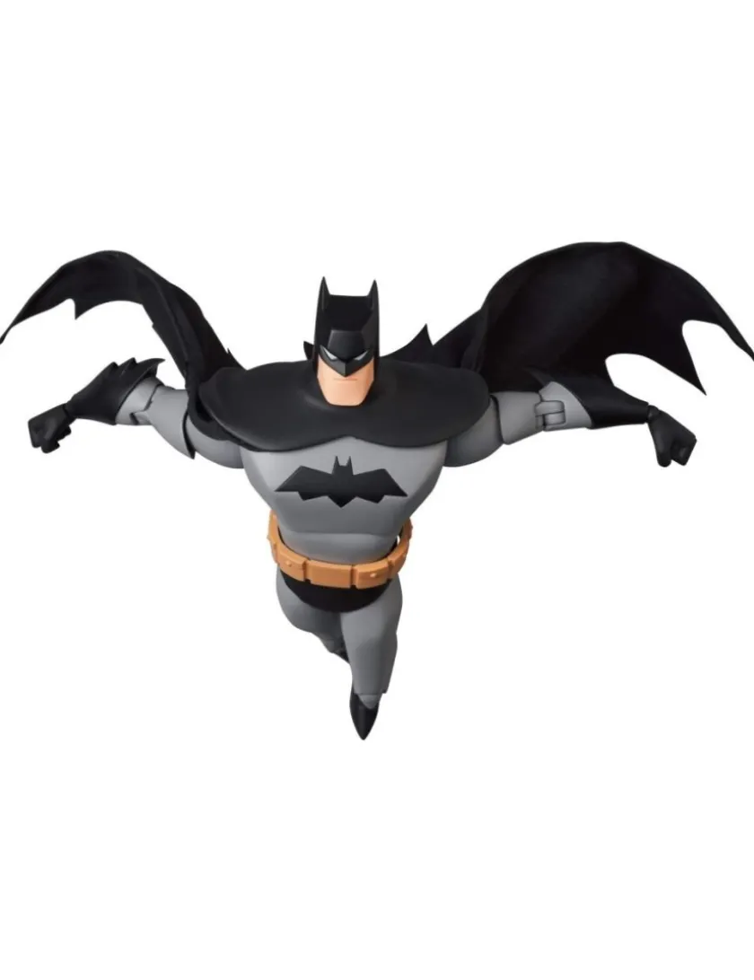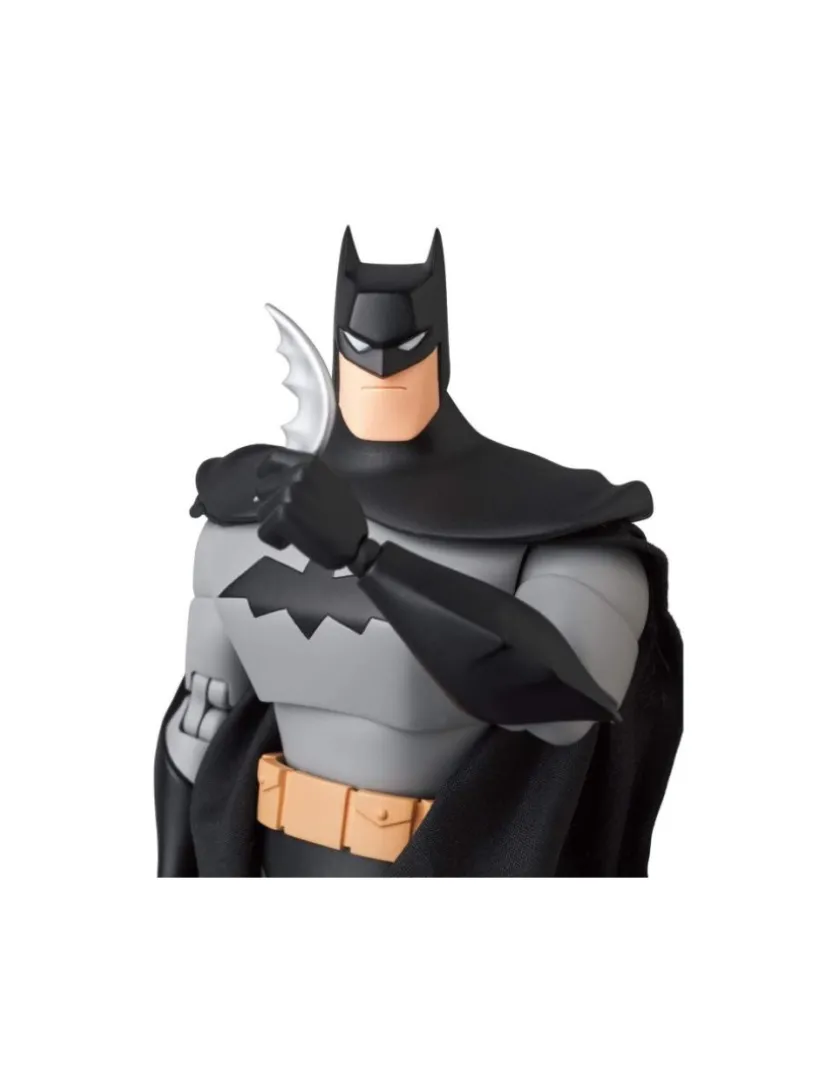 Batman tratto da Batman The New Batman Adventures entra nella line-up Medicom Toy MAFEX, azione completa, alto 16cm viene fornito con base espositiva, 2 teste intercambiabili, 4 mani intercambiabili, mantello in tessuto, mantello rigido, rampino e batarang