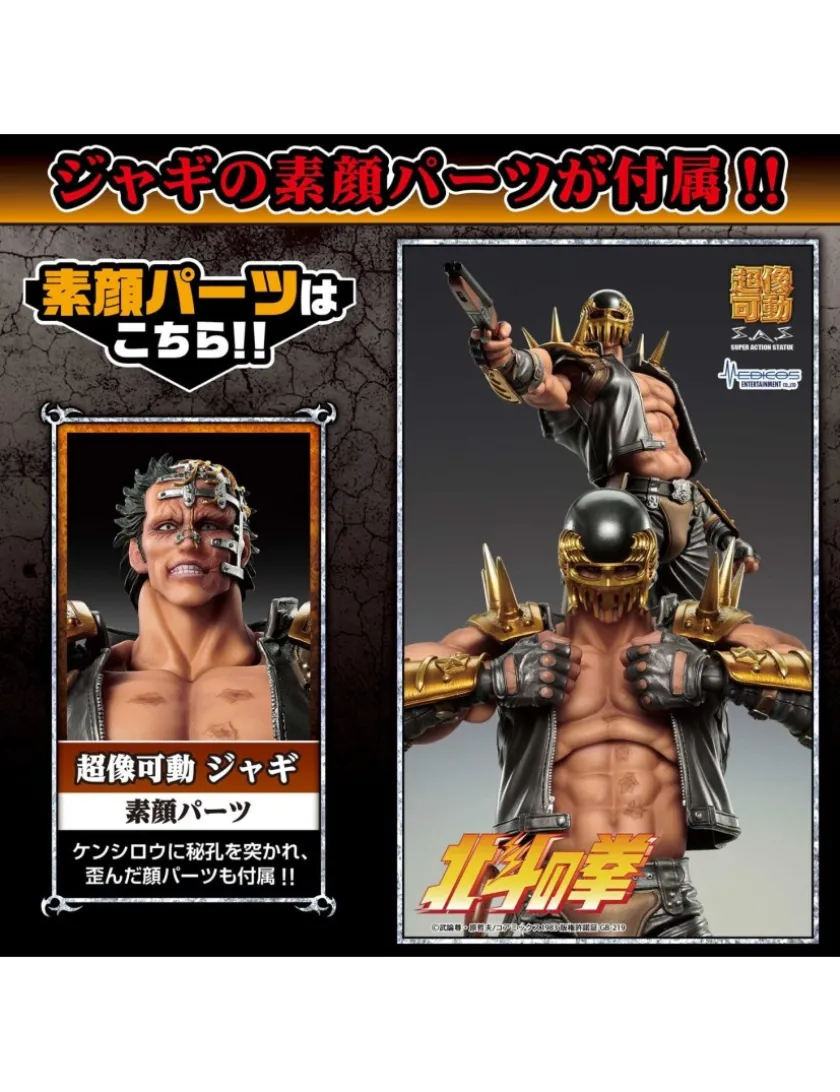 JagiĀ tratto da Hokuto No Ken entra nella line-upĀ Medicos Super Action Statue, azione completa alto 17.5cm. Viene fornito con 8 mani intercambiabili, 3 teste intercambiabili e fucile a canne mozze.