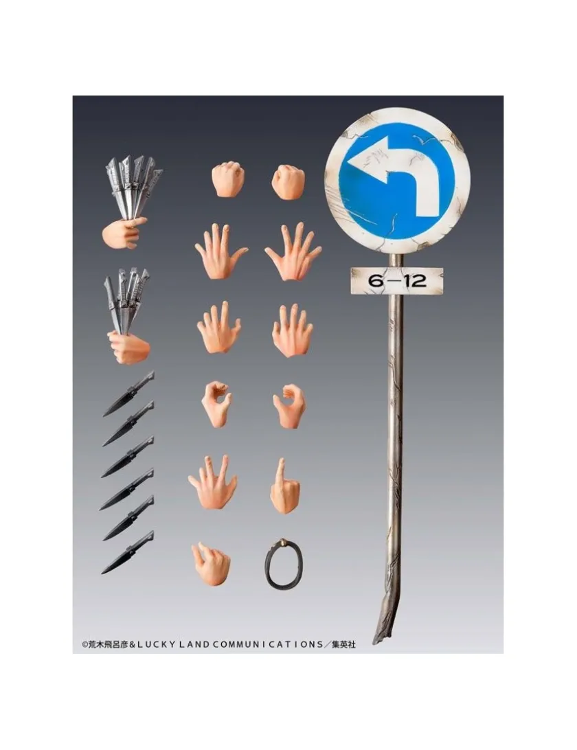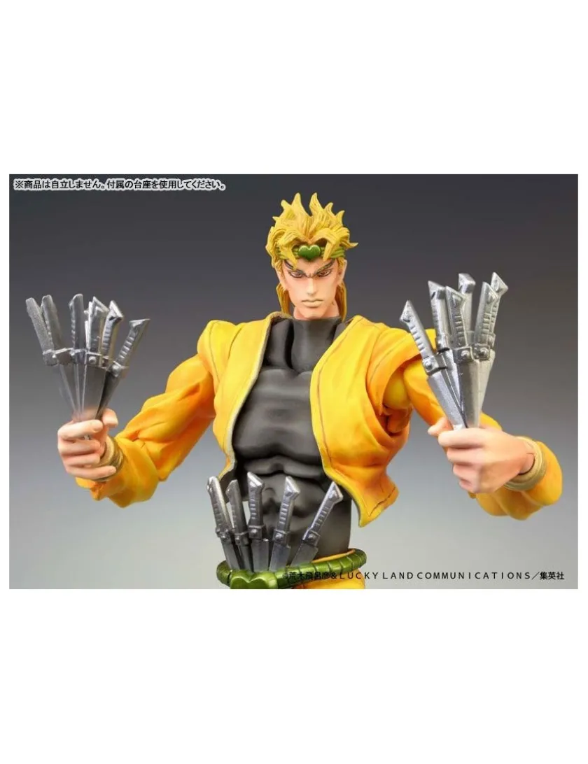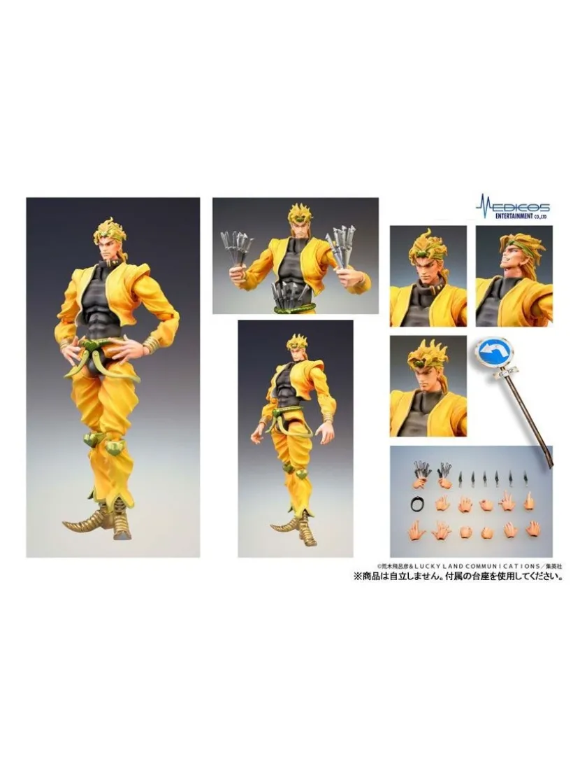 Dio Brando tratto da Le Bizzarre Avventure di JoJo Stardust Crusaders torna nella line-up Medicos JoJo Super Action Statue, azione completa alto 16cm. Viene fornito con 13 mani intercambiabili, pugnali e cartello stradale