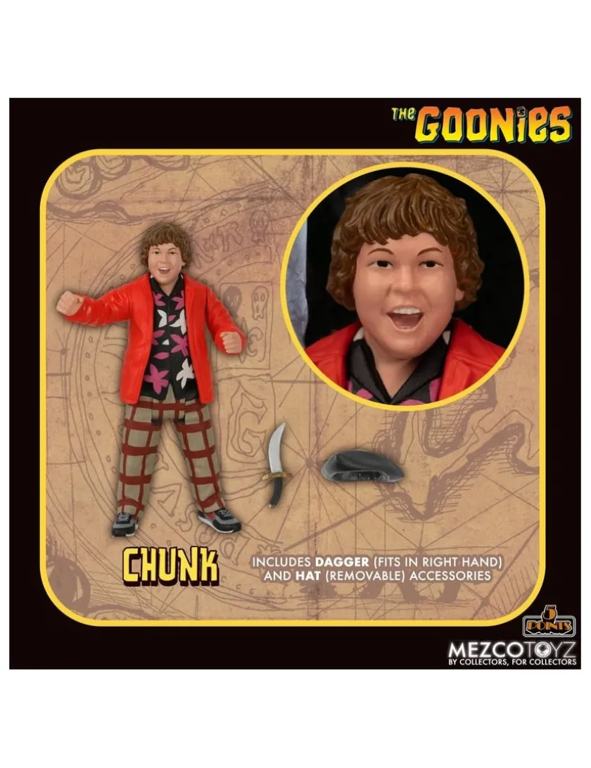 - Chunk: il goffo membro dei Goonies con un amore per il cibo, Chunk รจ noto per dire bugie e fare scherzi.