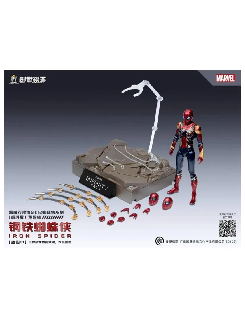 Iron Spider tratto da Marvel the Infinity Saga entra nella line-up Modoking Model Kit in scala 1/12, azione completa una volta assemblato. Vine fornito con base espositiva, base espositiva diorama, 8 mani intercambiabili, 2 teste intercambiabili, artigli e parti di effetto ragnatela