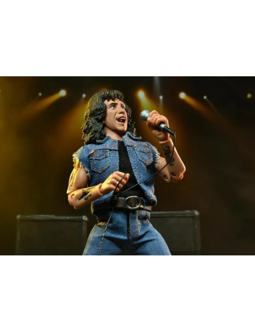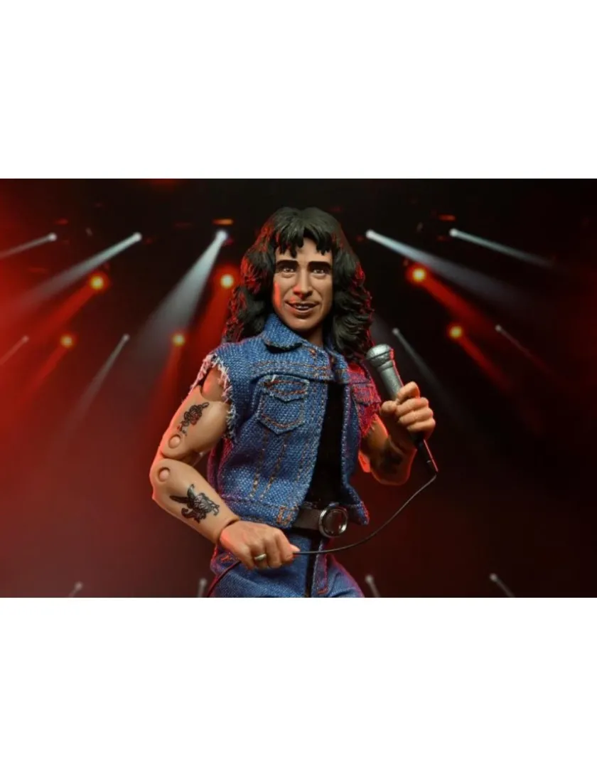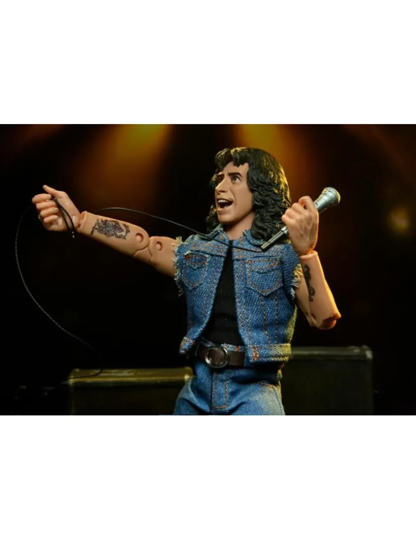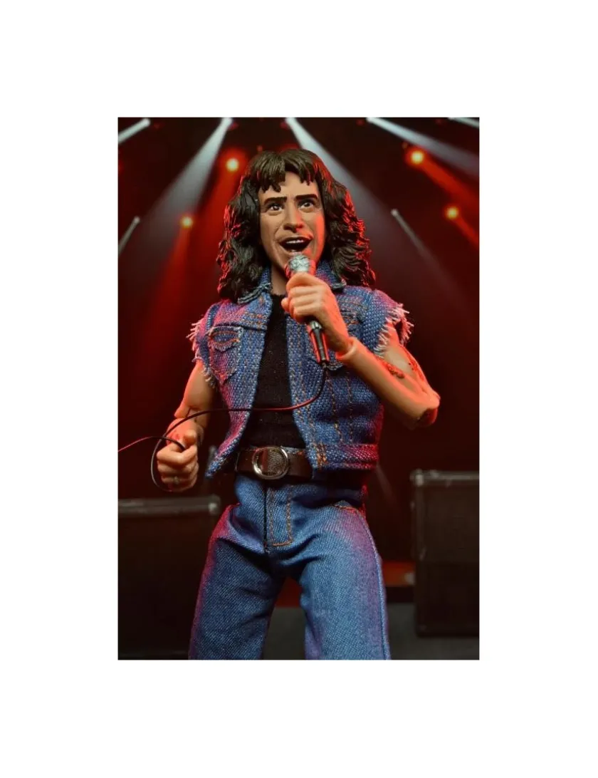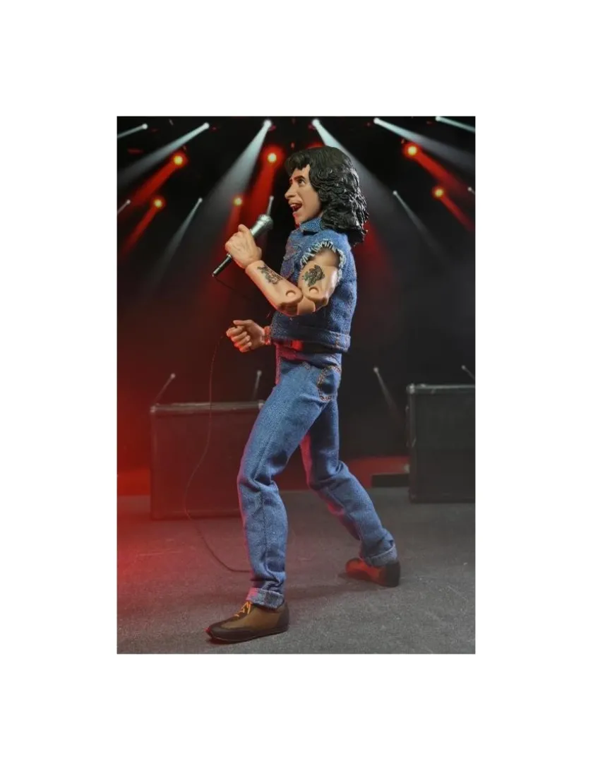Bon Scott degli AC/DC entra nella line-up Neca Clothed Figure, azione completa alto 20cm. Viene fornito con abiti in tessuto e microfono