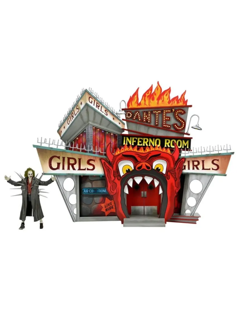 Porta la tua esposizione di Beetlejuice a un livello superiore con questo set diorama deluxe di NECA! Ricreata dall’iconica scena del film originale di Tim Burton del 1988, la Dante’s Inferno Room è il nightclub più in voga nell’aldilà! Questo diorama altamente dettagliato è un fantastico centrotavola a più livelli per l’intera collezione e presenta LED autentici del film. Viene fornito con un’esclusiva action figure articolata Ultimate Beetlejuice che sfoggia il suo look da trench con punte della scena. Alto oltre 18 pollici e largo due piedi, questo diorama richiede tre batterie AAA (non incluse) e presenta la capacità di plug-in USB-C (cavo non incluso). Richiede un po’ di assemblaggio.