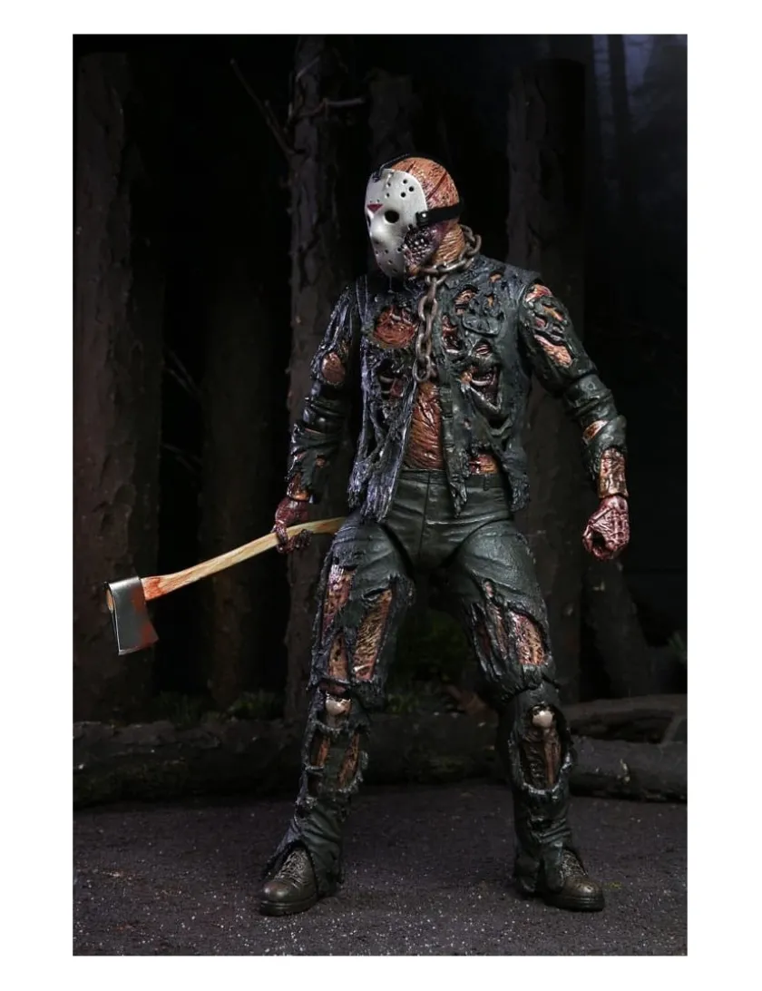 Jason Voohres tratto da Friday 13th Part. VII The New Blood entra nella line-up Neca Ultimate Action Figure, azione completa alto 18cm. Viene fornito con armi e testa intercambiabile.