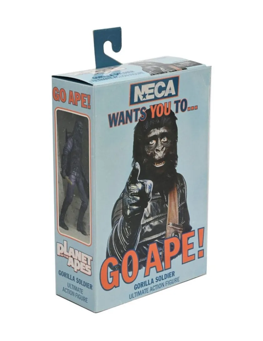 Il Gorilla Soldier dell’amato film del 1968 riceve il trattamento “Ultimate” di NECA come action figure in scala da 7 pollici con un arsenale di accessori: tre teste intercambiabili, due manganelli, asta di cattura, fucile, cintura, mitragliatrice, zaino rimovibile e mano alternativa.