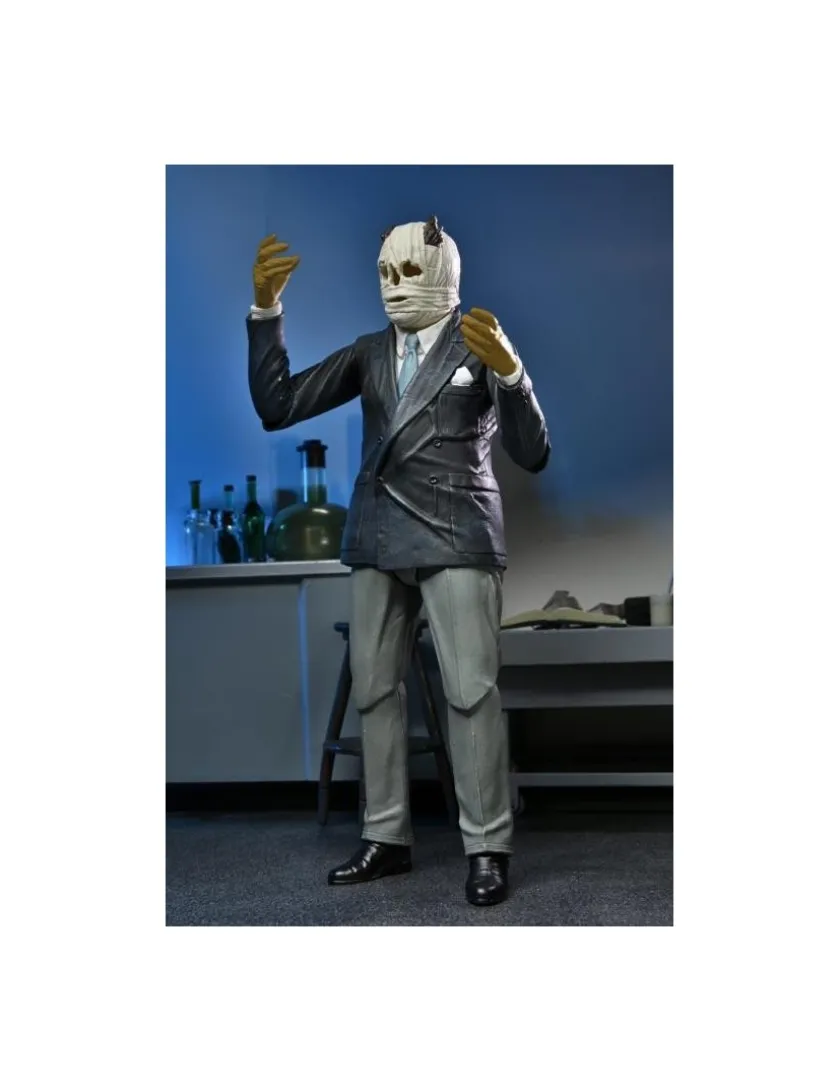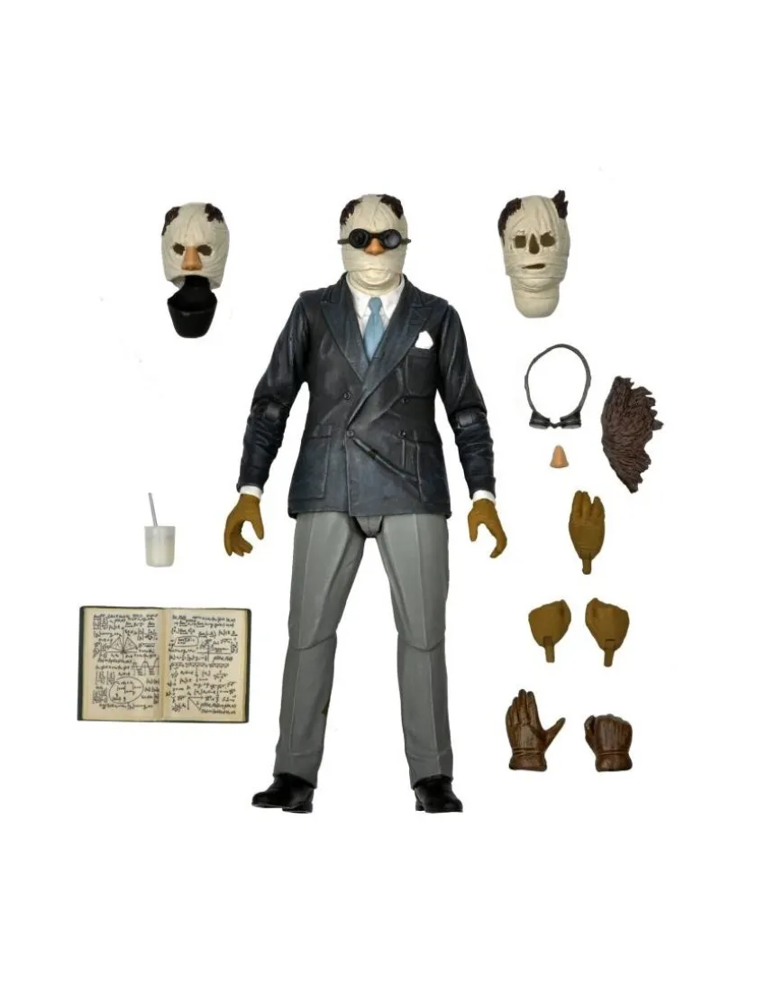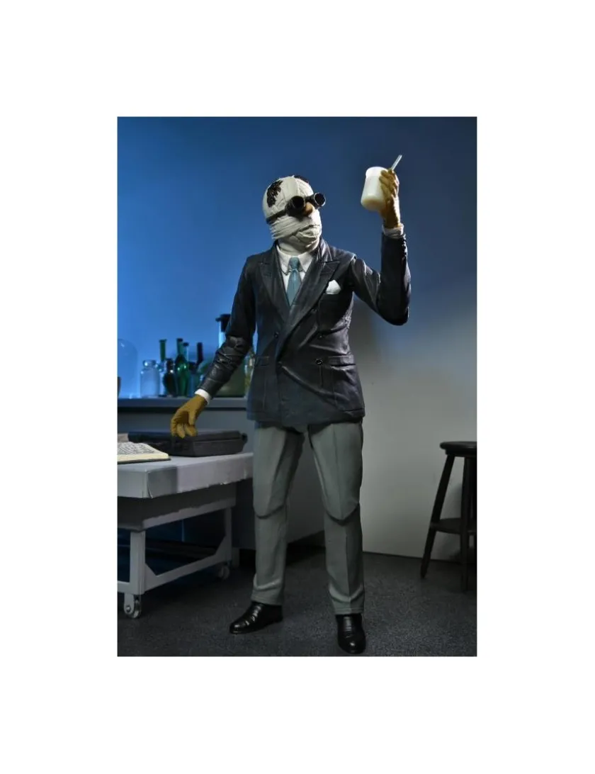 L’Uomo Invisibiletratto dall’omonimo film del 1933 entra nella line-up Neca Ultimate Action Figure, azione completa alto 18cm. Viene fornito con 2 teste intercambiabili, 5 mani intercambiabili e accessori