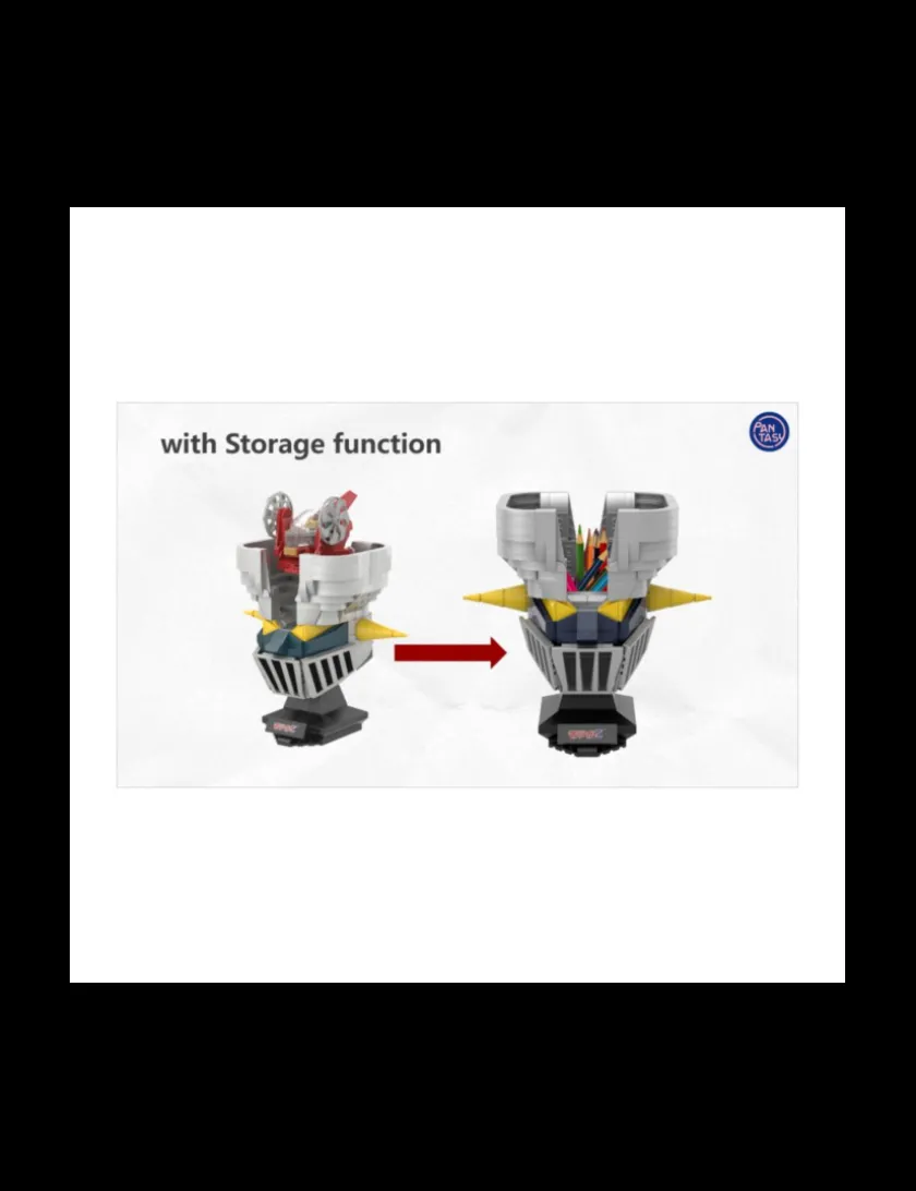 Pantasy presenta questo set di costruzione del busto di Mazinger Z all’interno della collezione Mazinger Z. Ha misure finali di 21 x 14 x 12 cm ed è basato sull’aspetto del robot creato da Go Nagai. Il set è composto da 670 pezzi, il tempo stimato per il montaggio è di circa 60 minuti e viene fornito con un manuale di istruzioni. Set consigliato per bambini dai 6 anni in su.