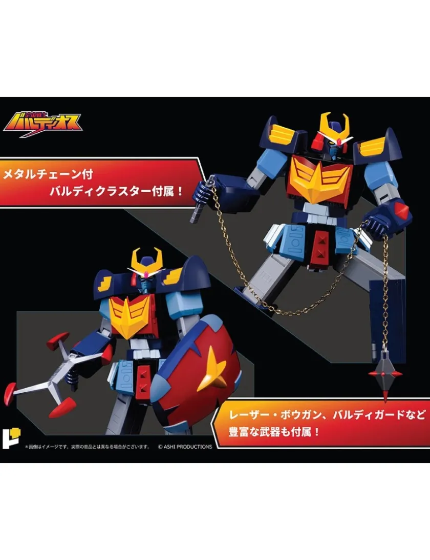 Space Warrior Baldios entra nella line-upĀ Pose Plus Metal Series, azione completa alto 27cm realizzato in ABS, PVC e netallo die-cast. VIene fornito con base espositiva, mani intercambiabili e armi.