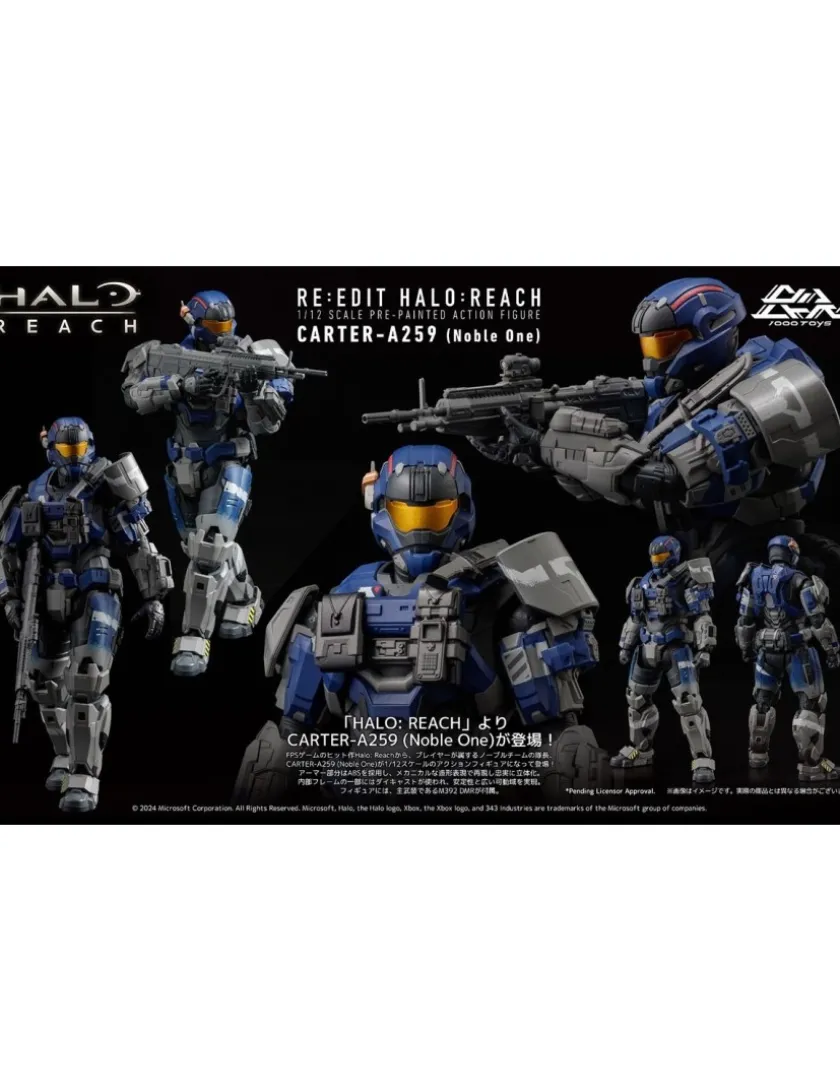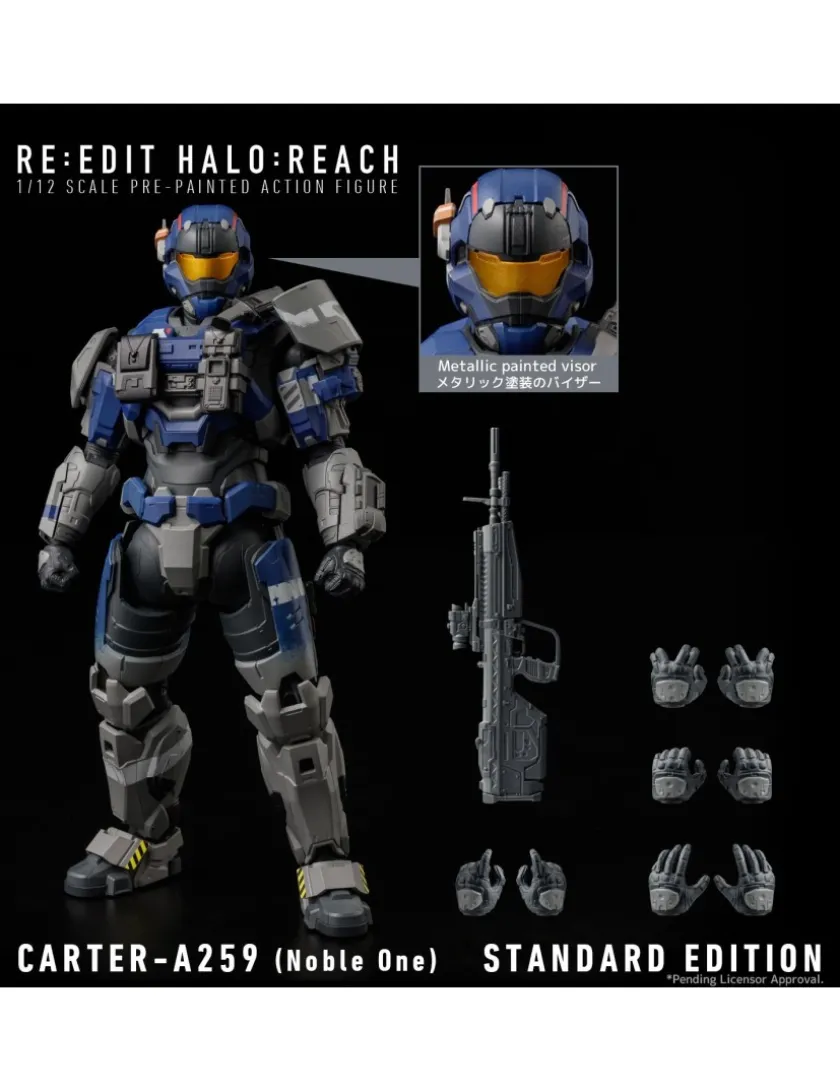 Carter-A259 Noble One tratto da Halo: Reach entra nella line-up Sentinel Re:Edit, azione completa, figure in scala 1/12 alta 17cm. Realizzato in ABS, PVC e metallo die-cast. Viene fornito con 10 mani intercambiabili e M392 DMR