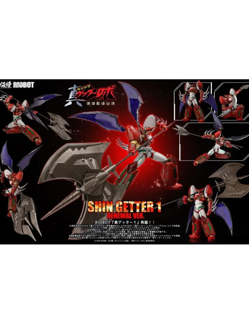 Lo Shin Getter 1 tratto da Shin Getter Robot The Last Day torna nella line-up Sentinel Riobot con questa versione Renewal, azione completa alto 20cm. Viene fornito con base espositiva, 8 mani intercambibili, Getter Tomahawk Getter Sight, Getter Tomahawk (Trasformato),Getter Battle Wing e Drill part