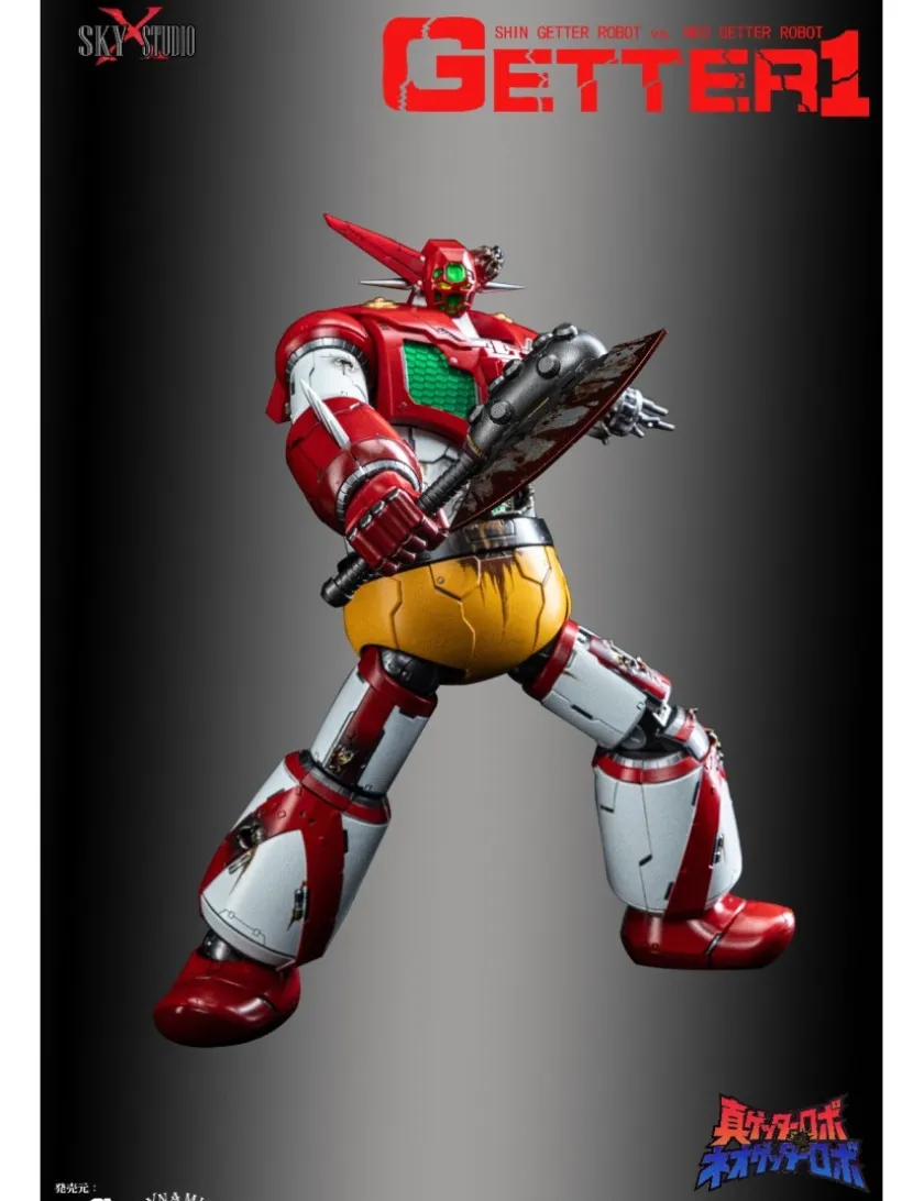 Getter 1 (Battle Damaged) tratto da Shin Getter Robot VS Neo Getter Robot entra nella line-up Sky X Studio SXD Chogokin, azione completa alto 25cm. Realizzato in ABS, PVC e metallo die-cast. Viene fornito con base espositiva, 7 mani intercambiabili, 2 Getter Tomahawk, mantello, accessori, parti di effetto e mini figure di Musashi Tomoe