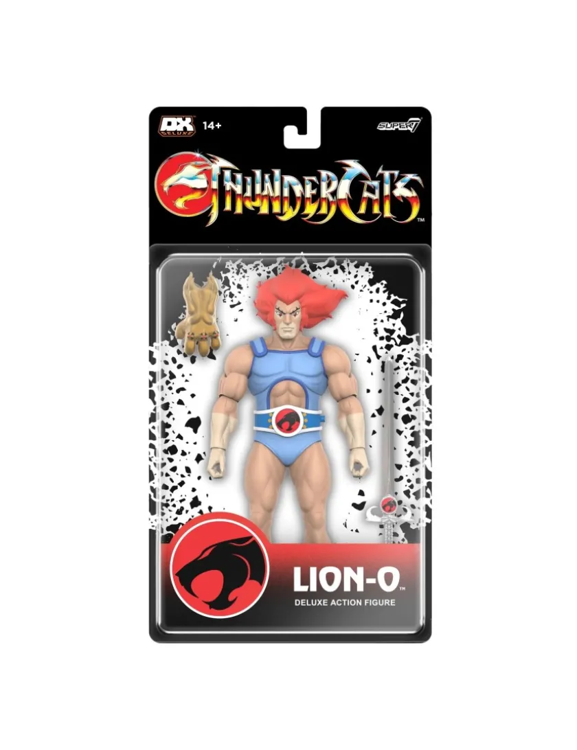 Lion-O, il Signore dei ThunderCats, è qui per ruggire ancora una volta, per chiamare a raccolta i suoi compagni ed incutere timore nei cuori dei nemici! Questa figura articolata di Lion-O ThunderCats Deluxe in scala 7” è ispirata alla serie animata classica, caratterizzata da una scultura intricata e da una pittura top, ed è dotata di accessori come la Spada dei Presagi e lo Scudo con Artiglio, il tutto confezionato in un bliser box decorato a tema