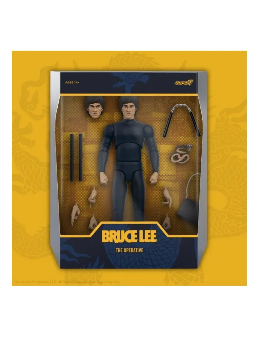 Bruce Lee The Operative entra nella line-up Super7 Ultimates Action Figure, azione completa alto 18cm. Viene fornito con 7 mani intercambiabili, testa intercambiabile, nunchaku, borsa, bastoni e serpente