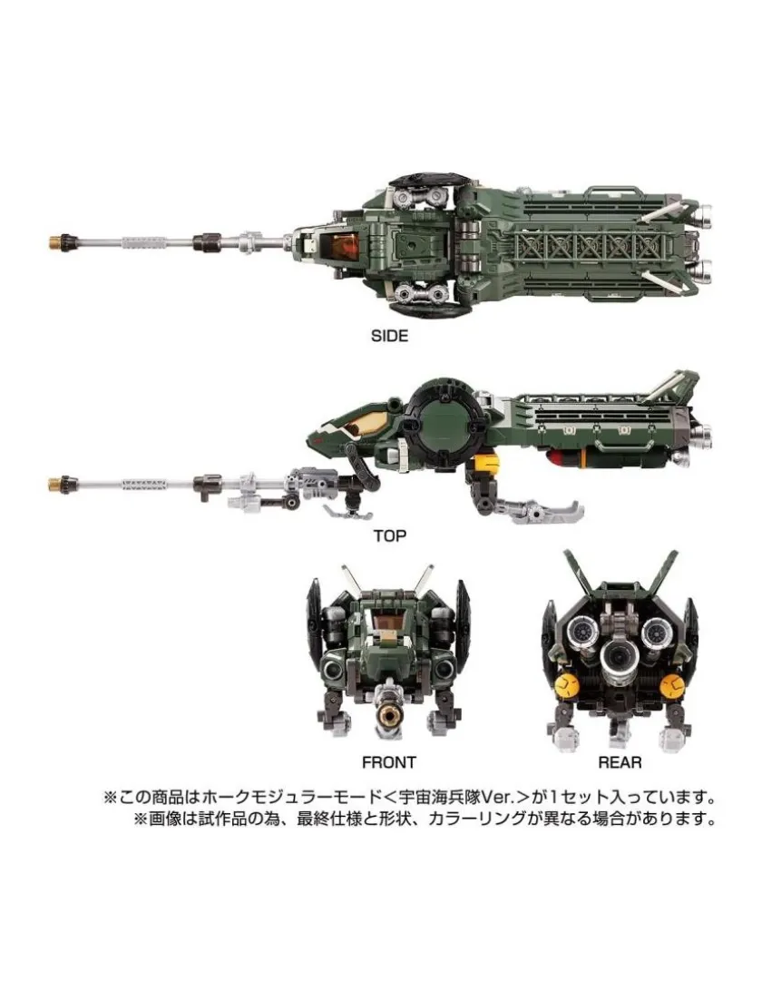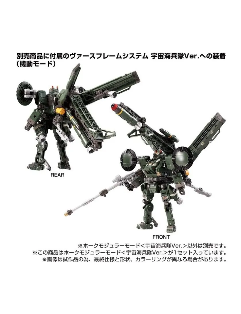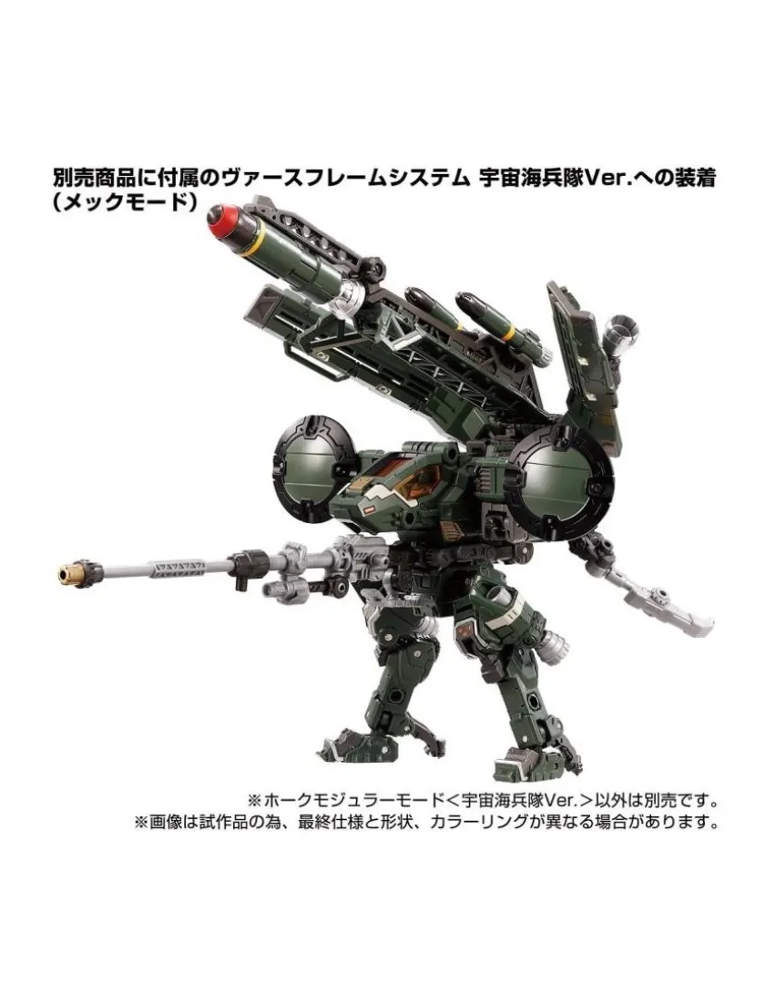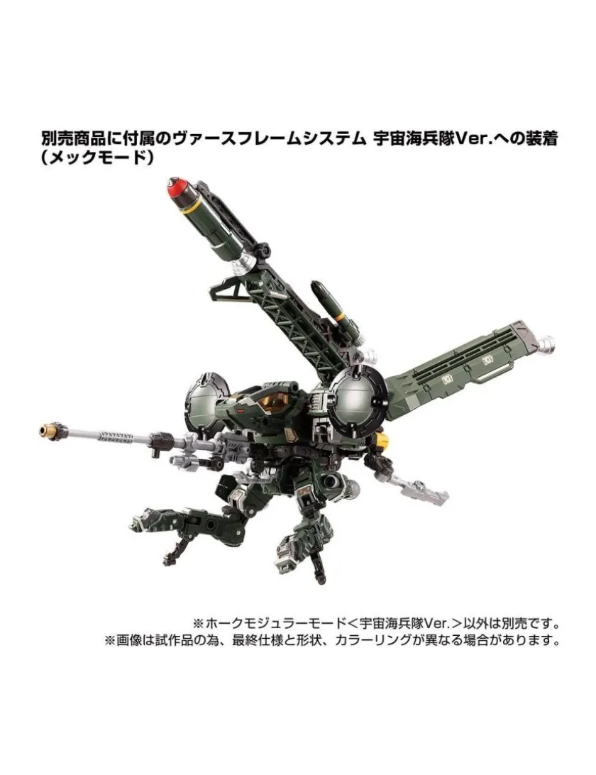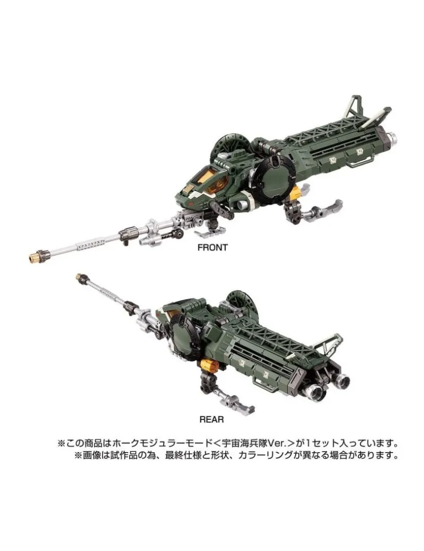 È arrivata la versione tattica degli Space Marines Corps della modalità modulare Mover Hawk. Il set include un’unità Orbisopter, un modulo proiettile e armi con il colore degli Space Marine Corps. La figura viene fornita con un lancio di missili, un fucile a lungo raggio e una mini action figure Diaclone membro Ver. 2.0.