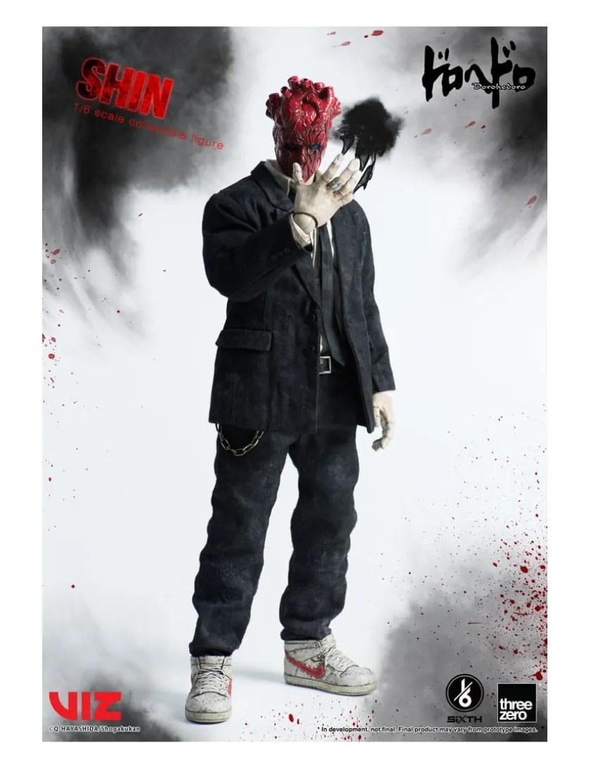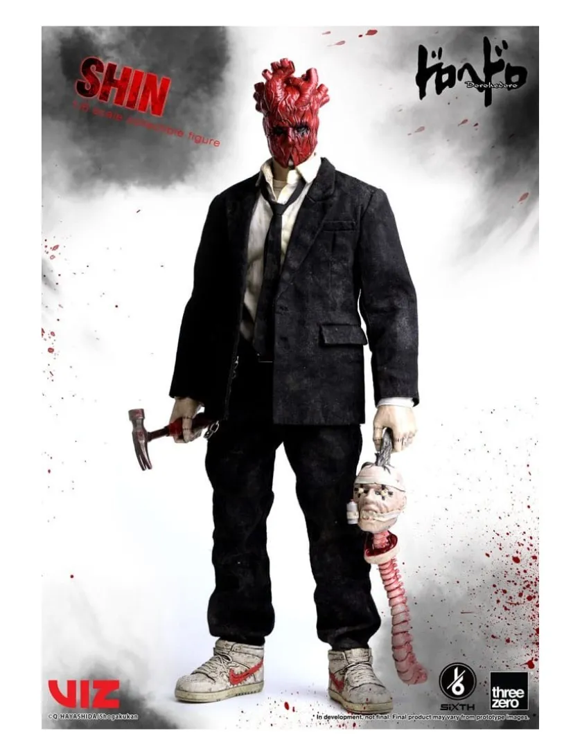 Shin tratto da Dorohedoro entra nella line-up Threezero 1/6 Sixth, azione completa e alto 32.5cm. Viene fornito con testa intercambiabile, 4 mani intercambiabili, occhiali, martello, sacco della spazzatura e testa mozzata con colonna vertebrale