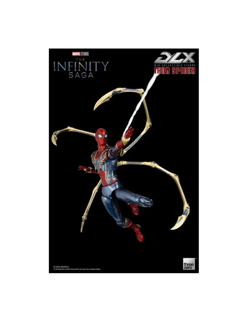 Iron Spider tratto da The Infinity Saga entra nella line-up Threezero DLX, azione completa con 68 punti di articolazione, alto 16.5cm. Realizzato in ABS, PVC e metallo die-cast. Viene fornito con base espositiva, 8 occhi intercambiabili, 10 mani intercambiabili e parti d’effetto ragnatela.