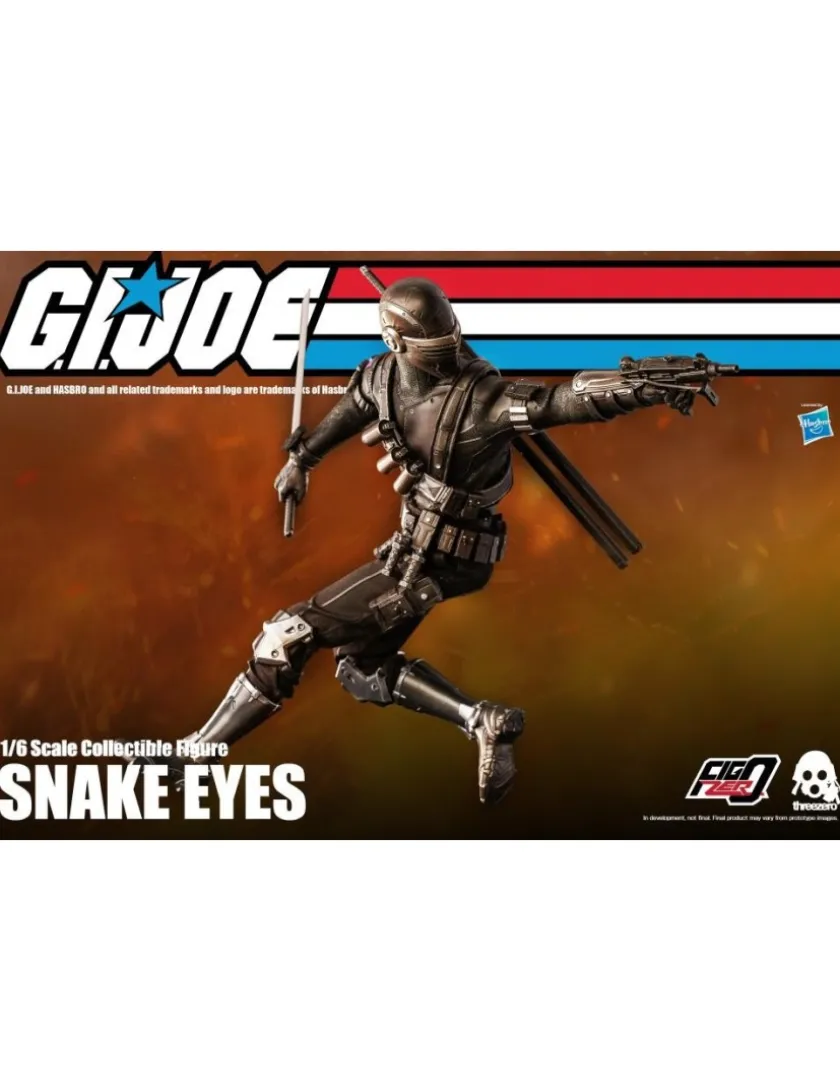 Snake Eyes tratto da G.I. Joe entra nella line-up Threezero, azione completa presenta 22 punti di articolazione ed é alto 30cm. Viene fornito con 8 mani intercambiabili, uzi, pistola, coltello, 2 katana, 3 granate fumogene e 3 granate stordenti.