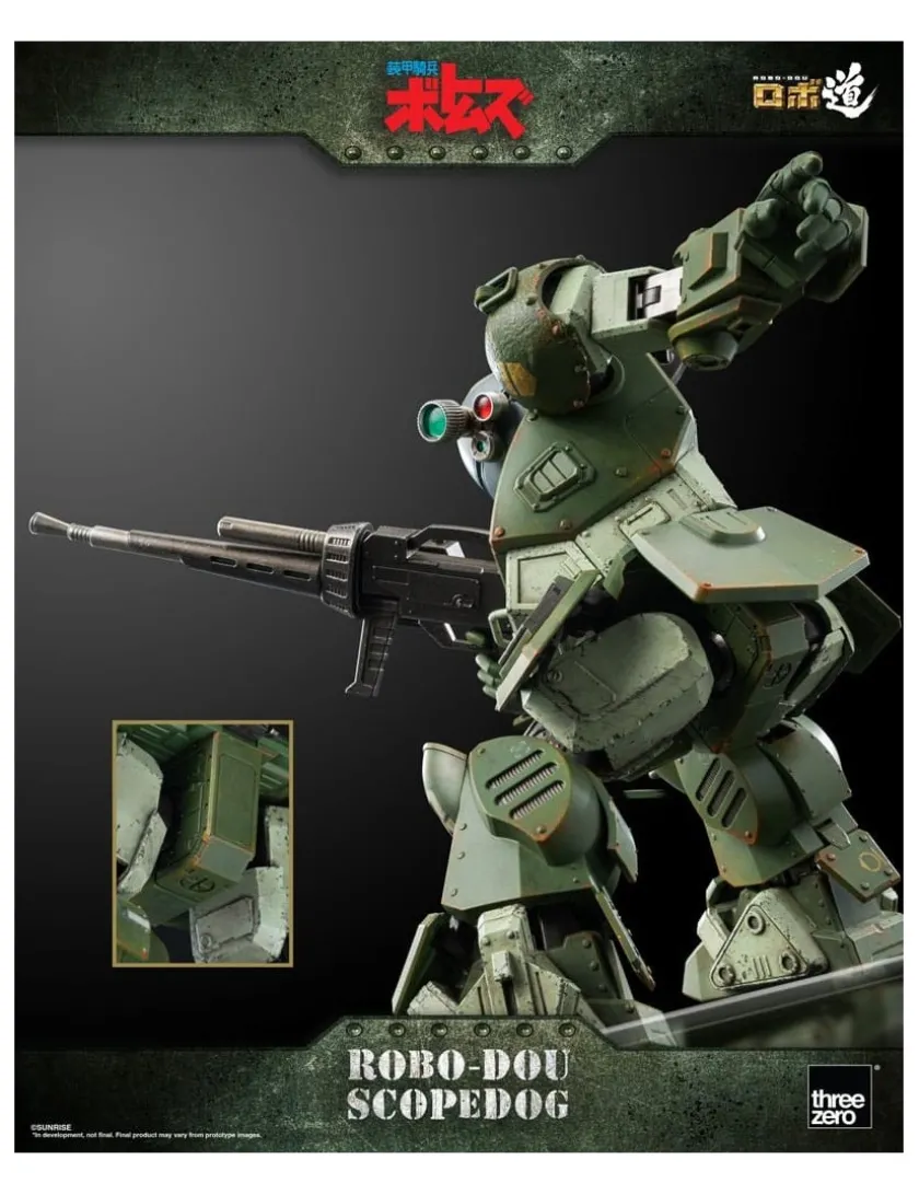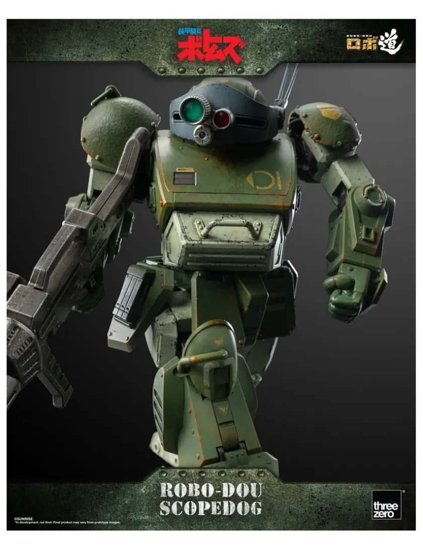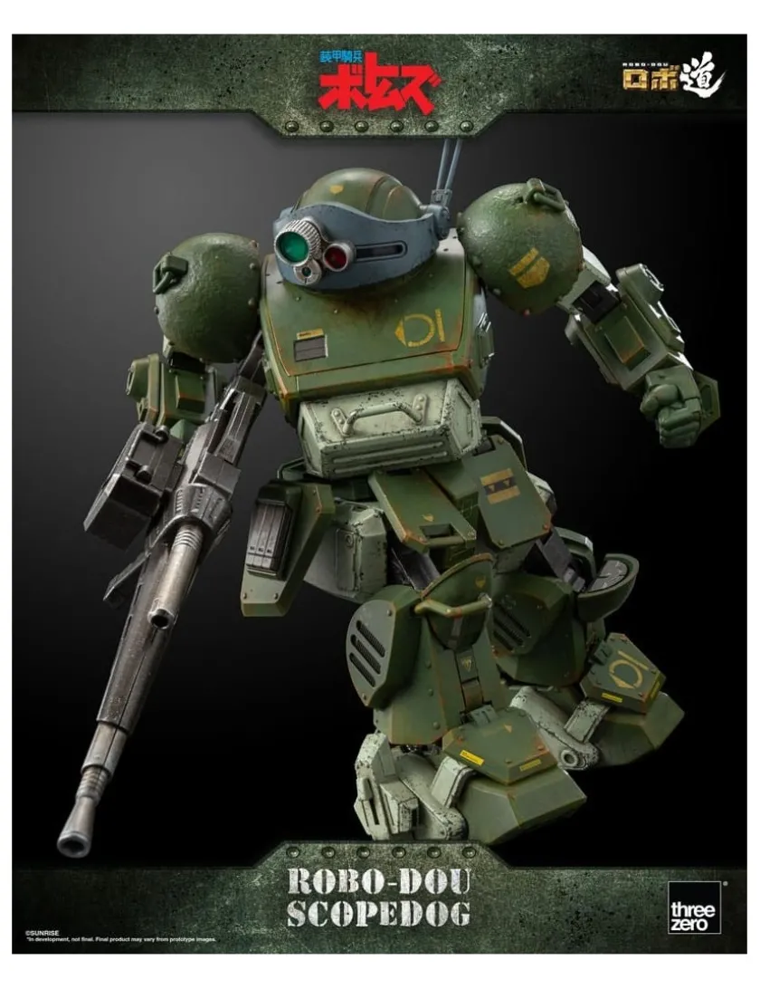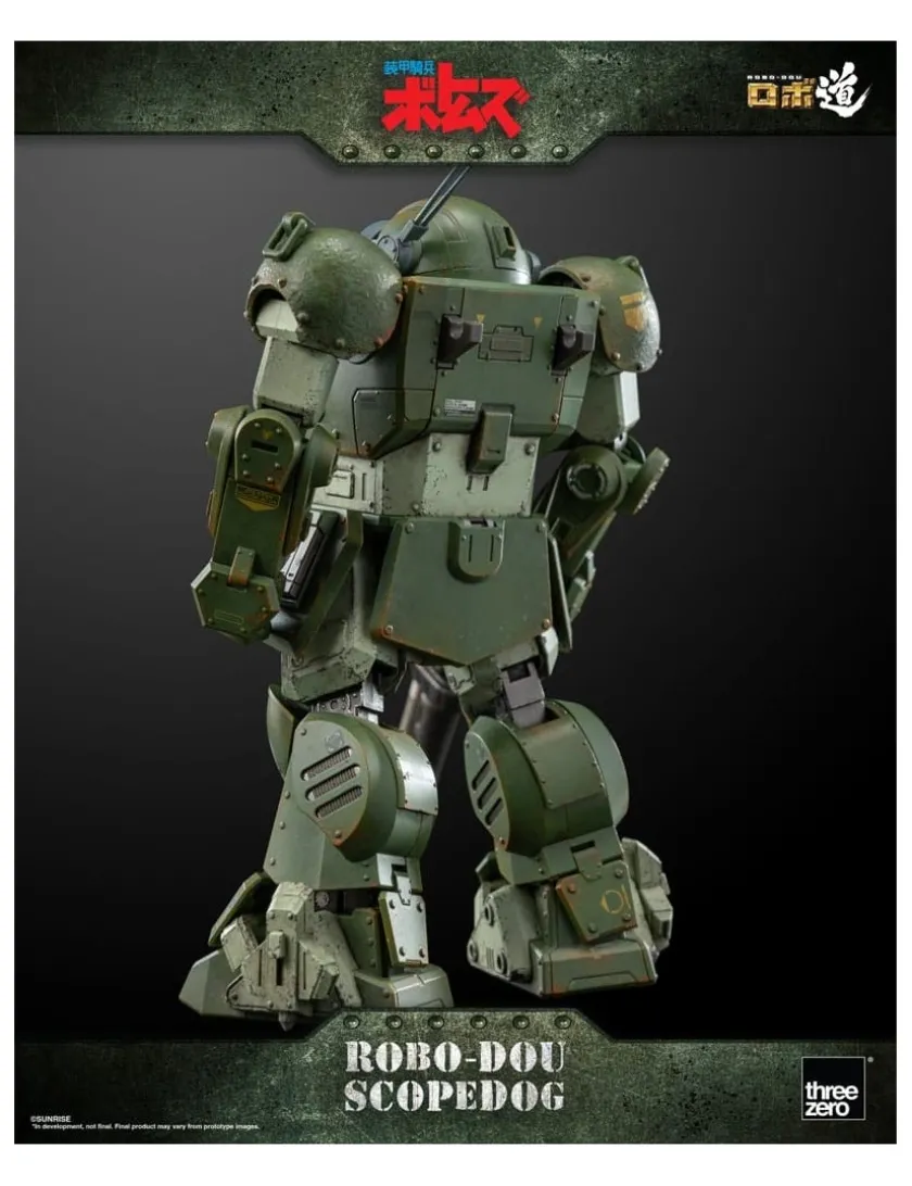 Scopedog tratto da Armored Trooper Votoms entra nella line-up Threezero ROBO-DOU, azione completa con 76 punti di articolazione é alto 14.5cm ed é realizzato in ABS, PVC, POM e metallo diecast. Viene fornito con 6 mani intercambiabili, mitragliatrice GAT-22 e figure di Chirico Cuvie