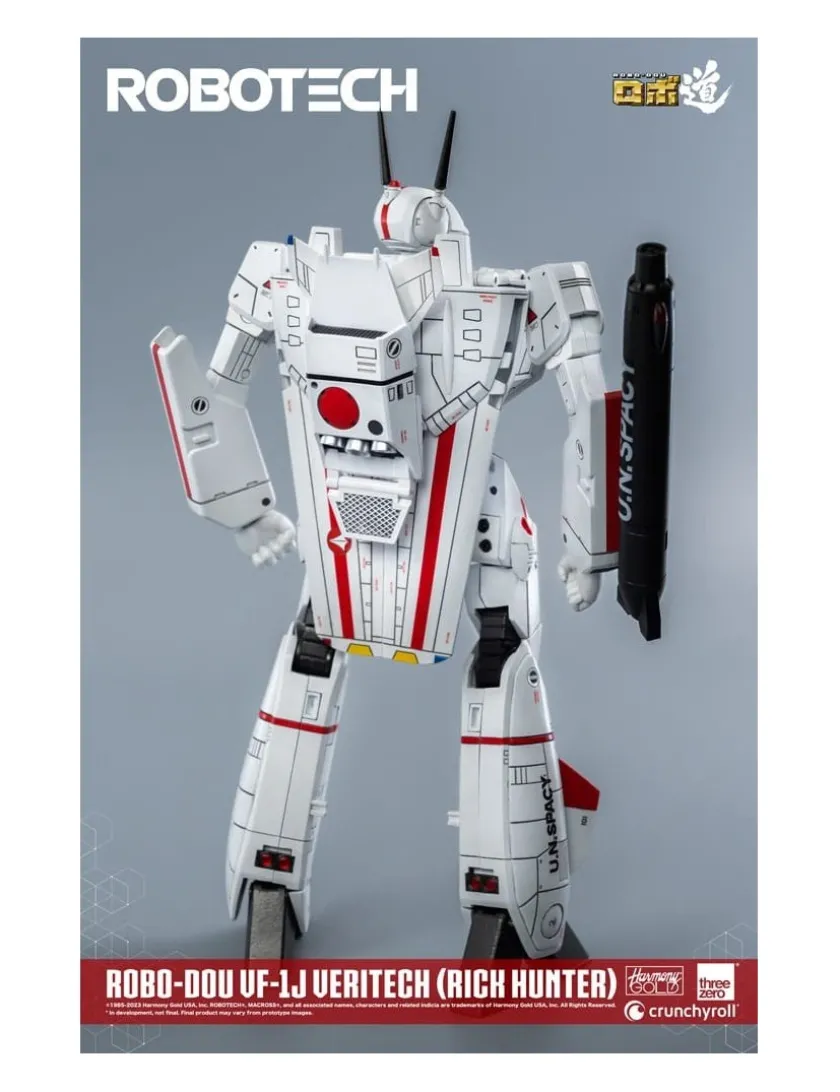 La VF-1J Veritech di Rock Hunter tratta da Robotech/Macross entra nella line-up Threezero ROBO-DOU, azione completa e trasformabile é alta 20cm in modalità robot ed é realizzata in ABS, PVC, POM e metallo diecast. Viene fornito con base espositiva, 8 mani intercambiabili, Gunpod GU-11, set di missili, parti antenna e mini figure di Rick Hunter